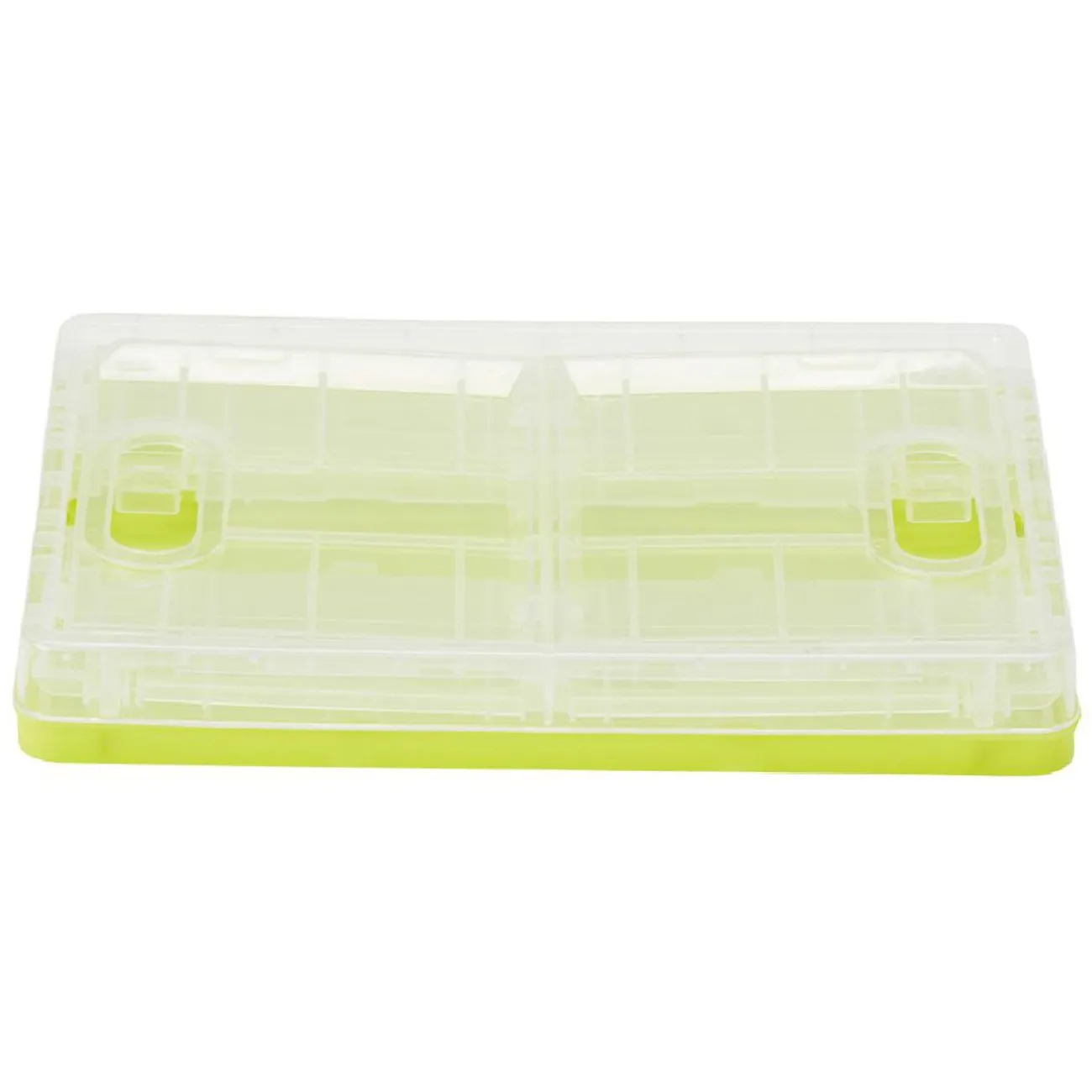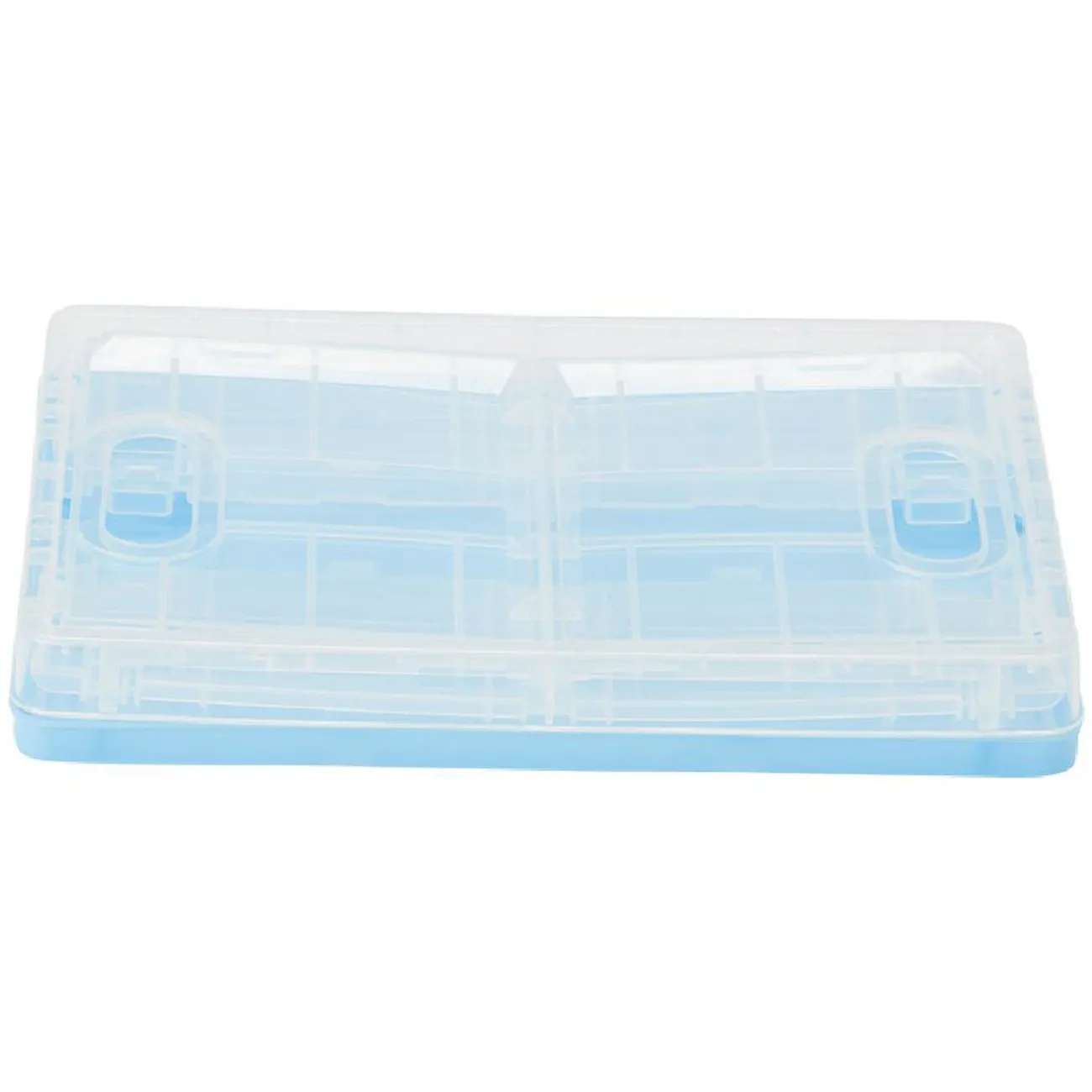 Boîte de rangement alpina rectangulaire transparente et bleue, rose ou verte.