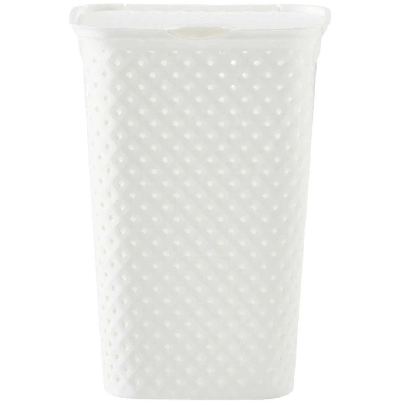 Coffre à linge design diamant avec couvercle rabattable et muni de deux poignées latérales pour faciliter son transport.