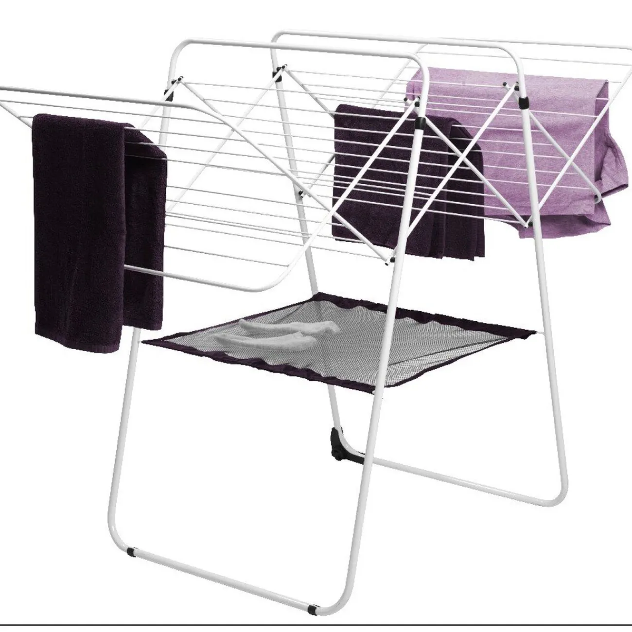 Séchoir dépliable 28 m d’étendage, dim. 139×106,5×66 cm, métal.Filet de séchage linge délicat, patins antiglisse, se déplie en un seul geste.