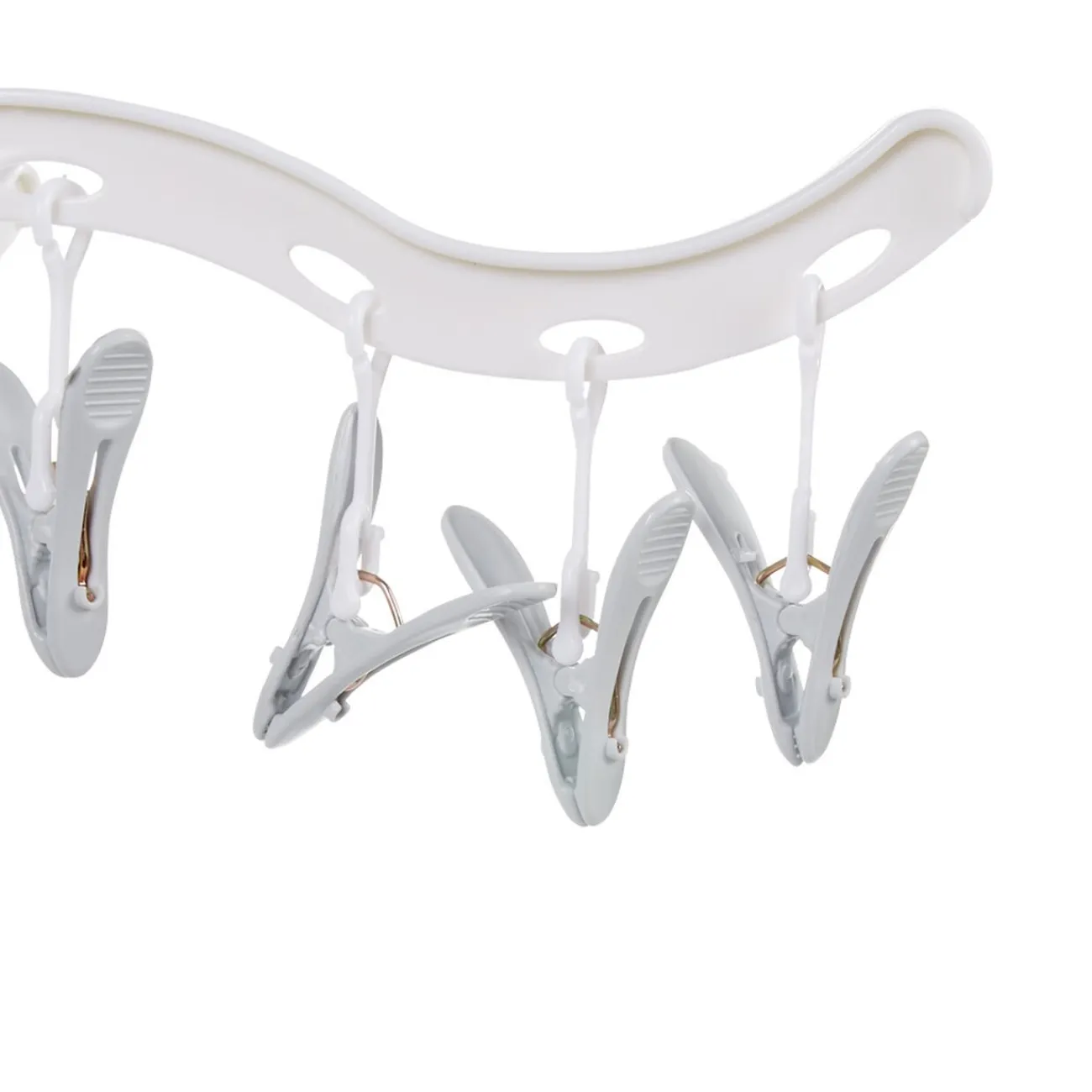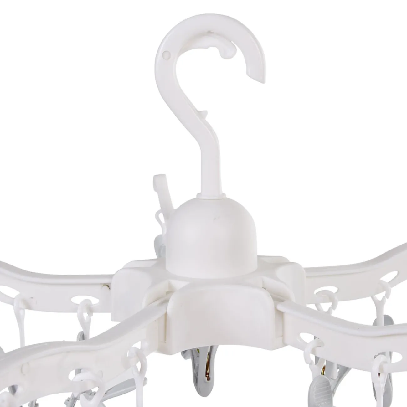 Séchoir à linge blanc avec 30 pinces accrochées.