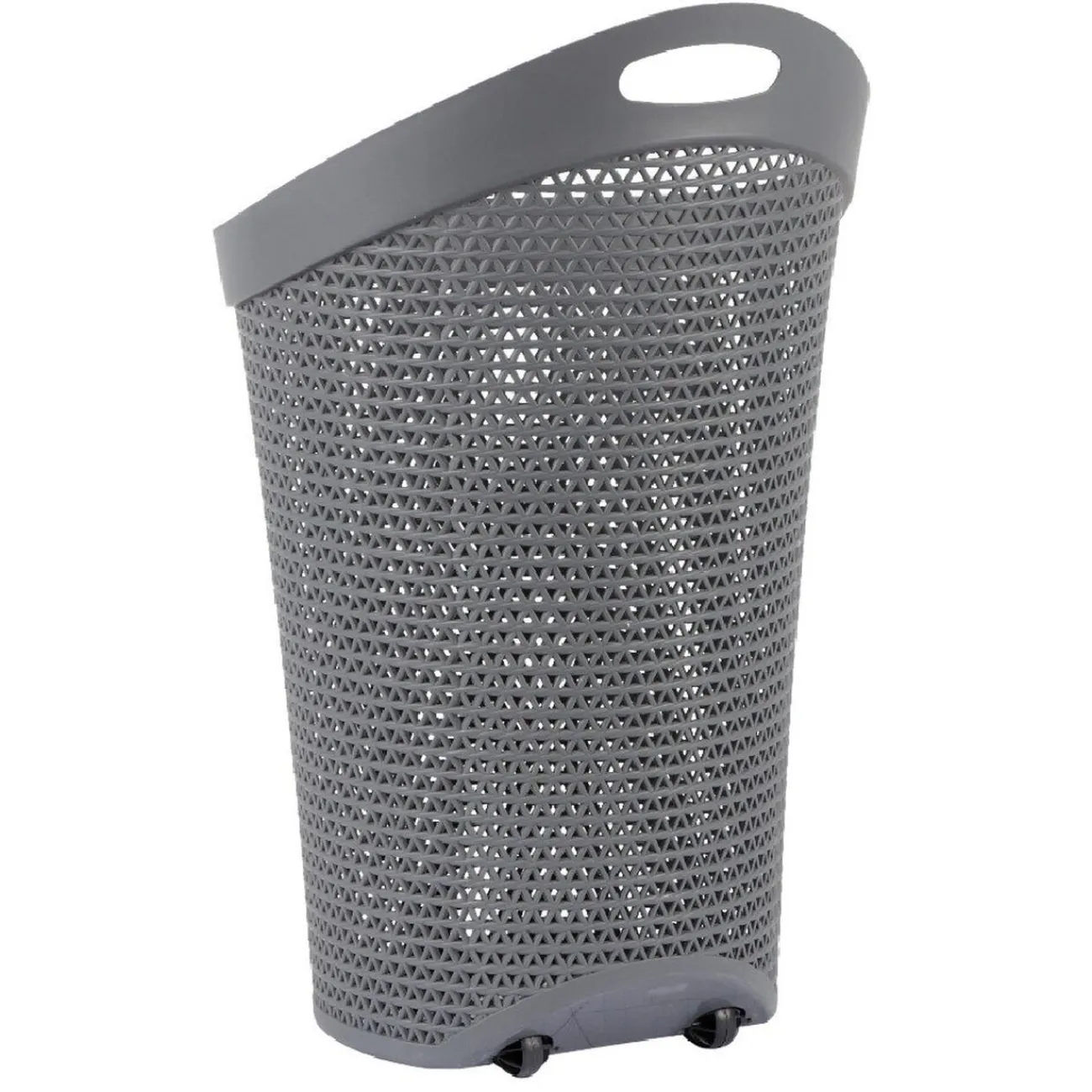 Panière à linge grise effet tressé de forme ovale.