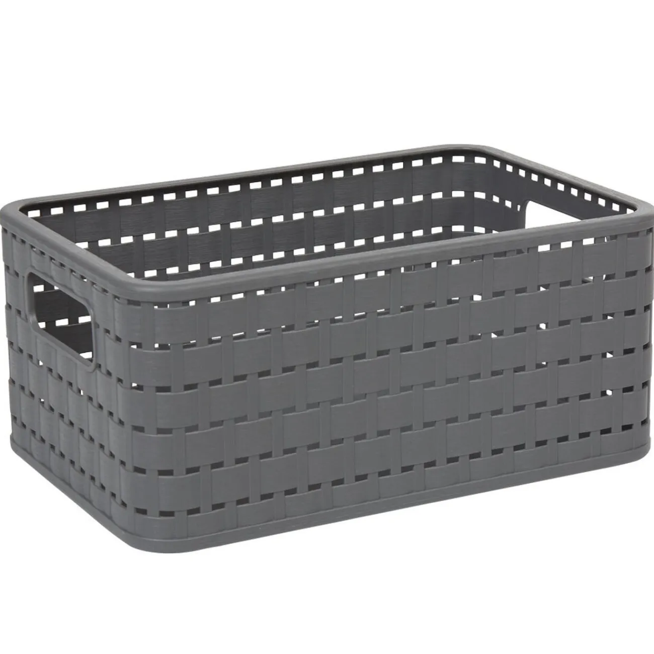 Panière grise en plastique effet tressé d’une contenance de 6 litres.