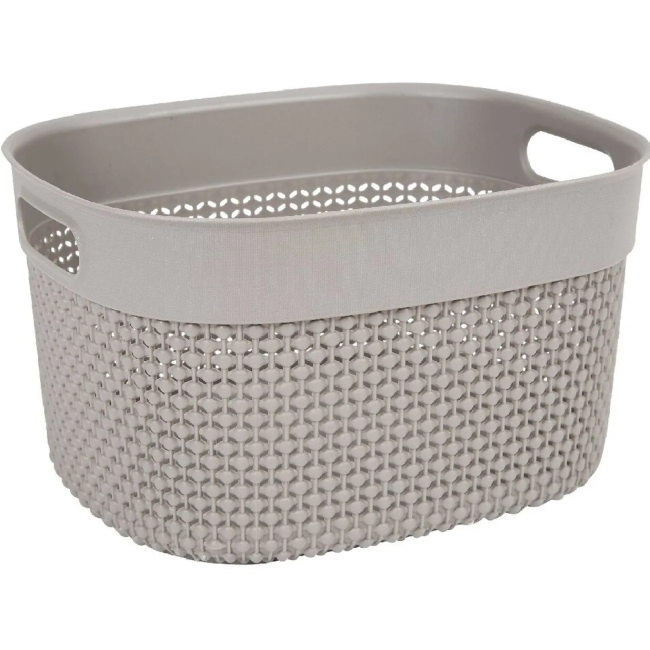 Panière de rangement en plastiqued’une contenance de 6 L. Coloris : Taupe, motif légèrement ajouré.