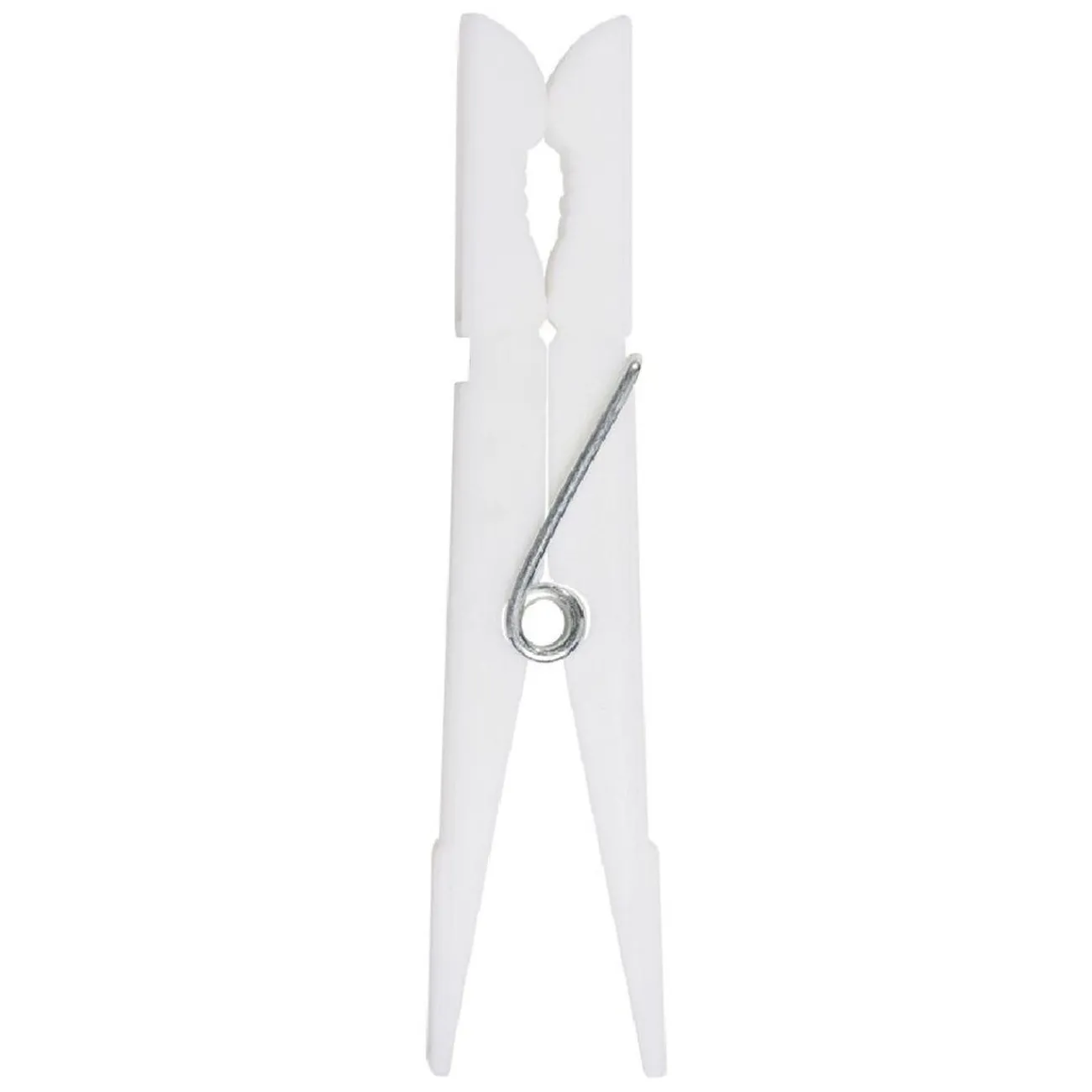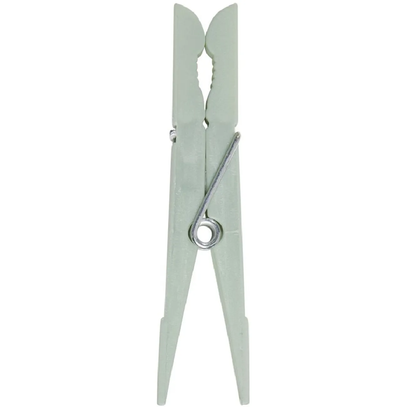 Bocal en plastique à suspendre avec 100 pinces à linge de couleur blanche, grise et verte.