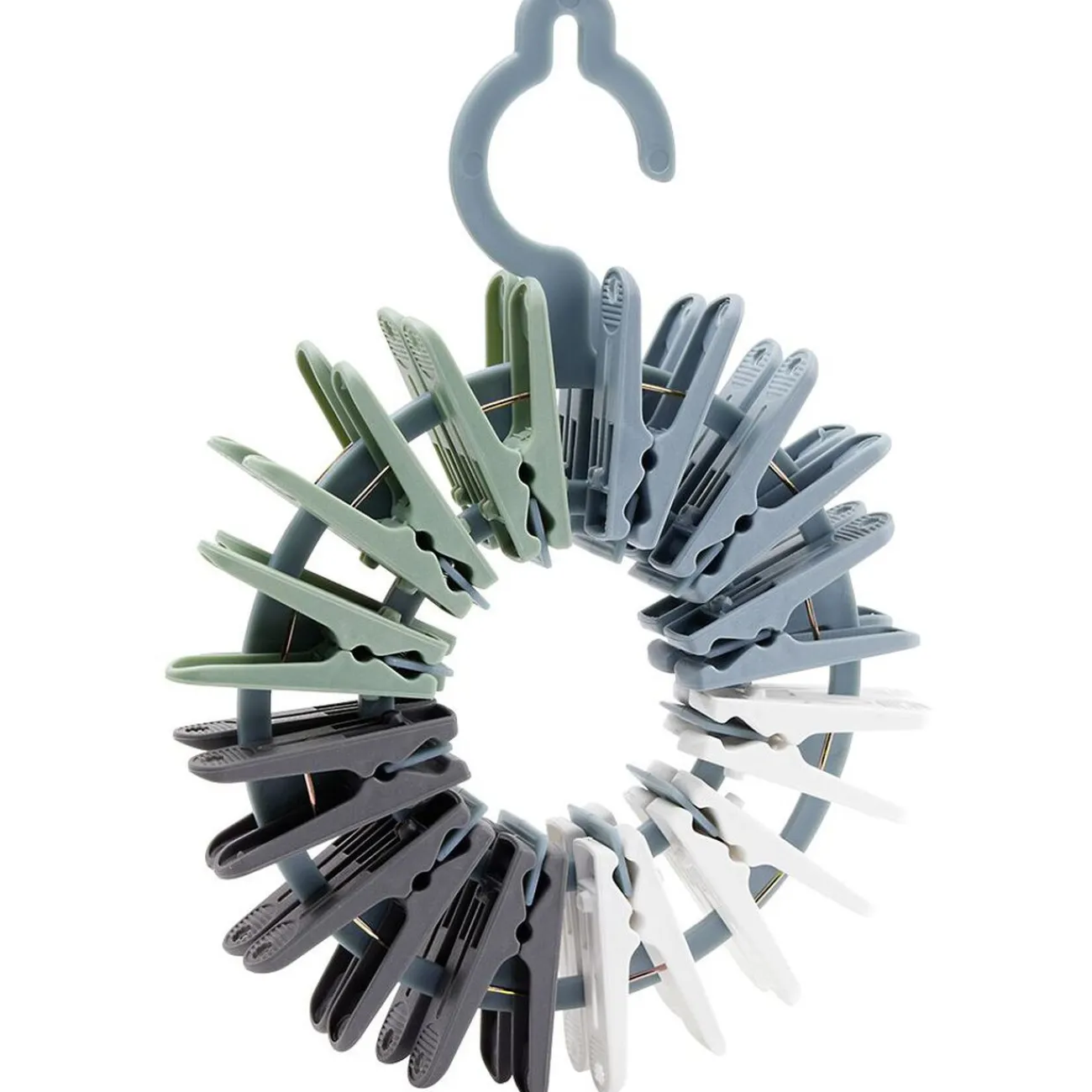 Lot de 24 pinces à linge en plastique aux couleurs assortis.
