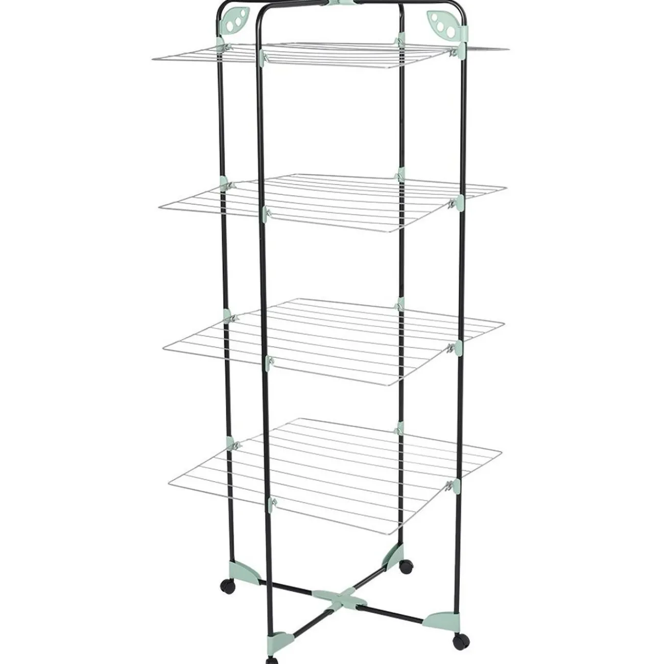 Séchoir tour sur 4 niveaux avec une capacité d’étendage de 32 mètres, pratique pour sécher son linge en hauteur sans occuper tout l’espace de votre intérieur.