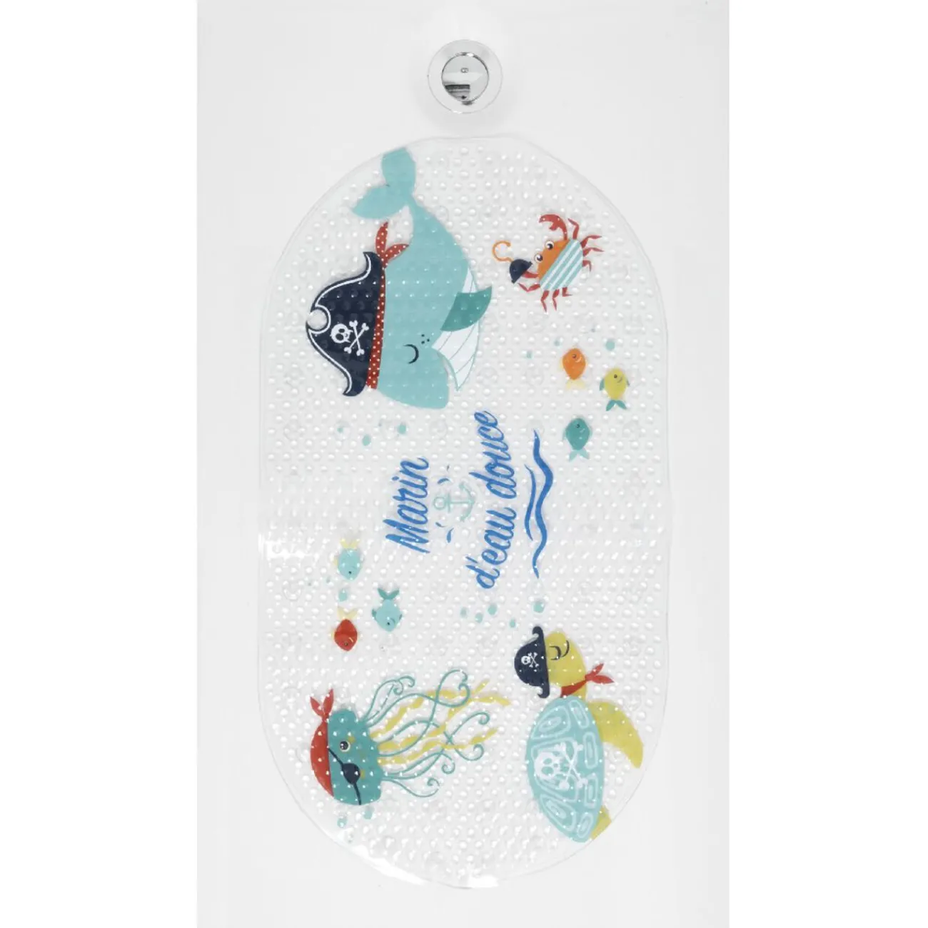 Fond de baignoire en pvc transparent avec motifs multicolores animaux de la mer.