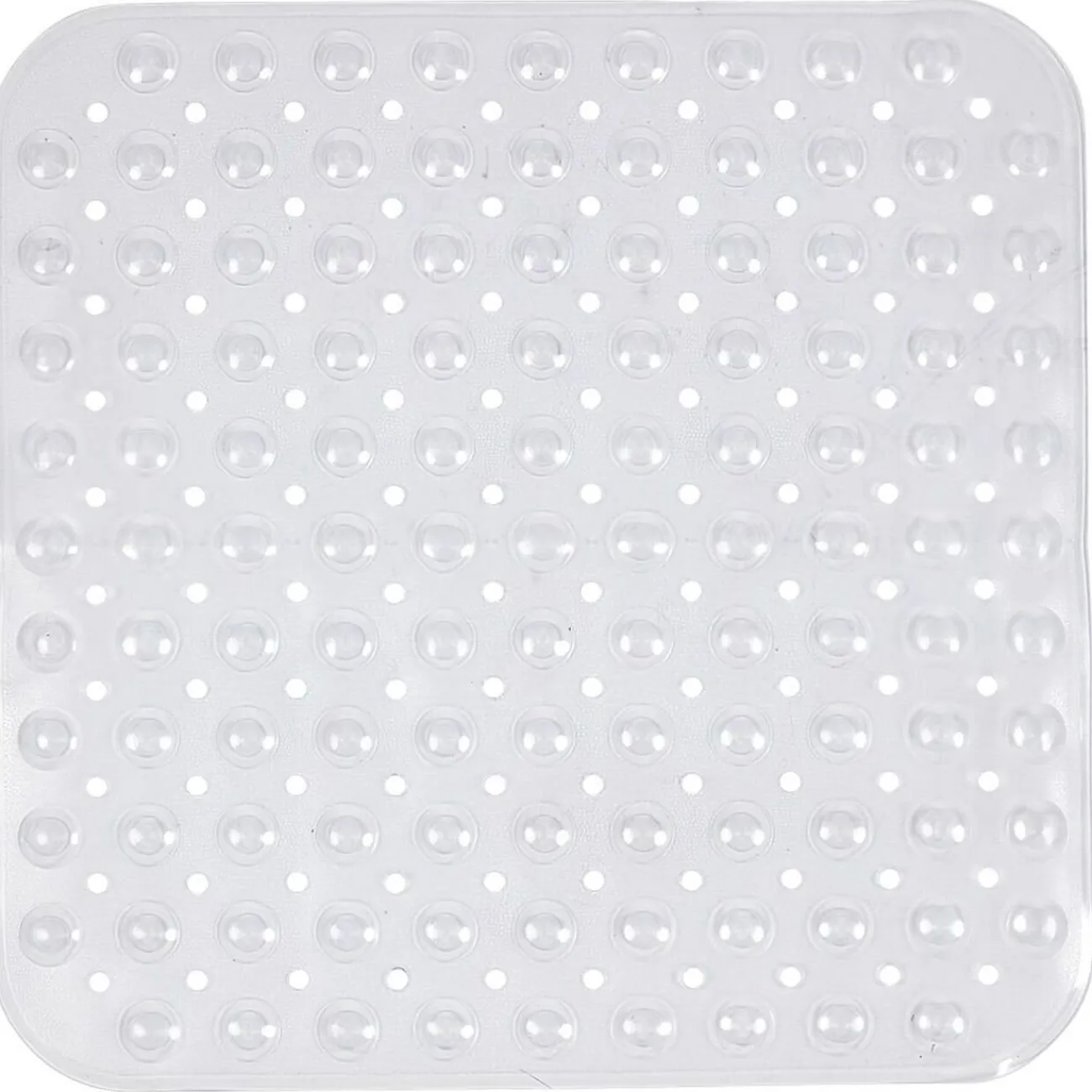 L.52,5 x l.53 cm, PVC antidérapant design bulles, blanc transparent.