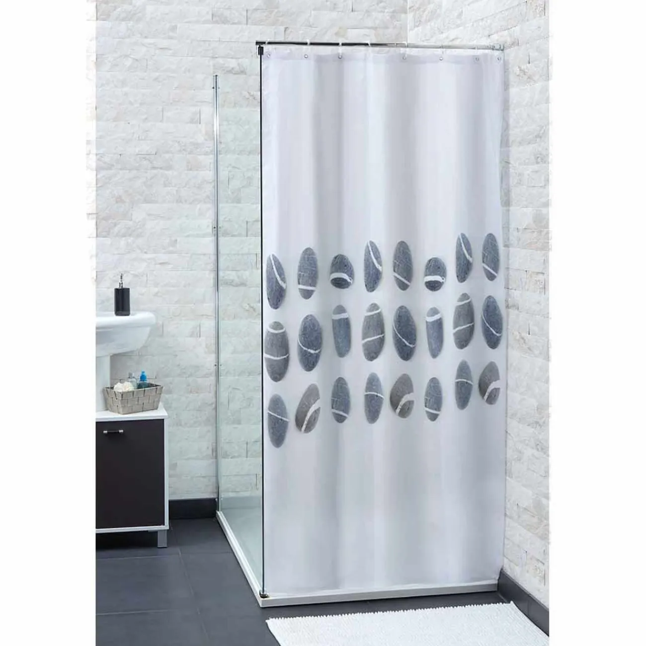 Gifi Equipement Douche^Rideau de douche blanc motif galet gris