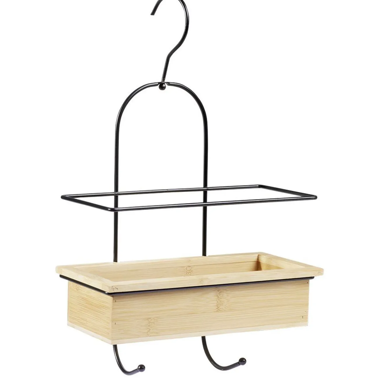 Pratique ce serviteur de douche comprend 1 bac en bambou et 2 crochets pour suspendre fleur de douche, gant de toilette et brosse à dos.