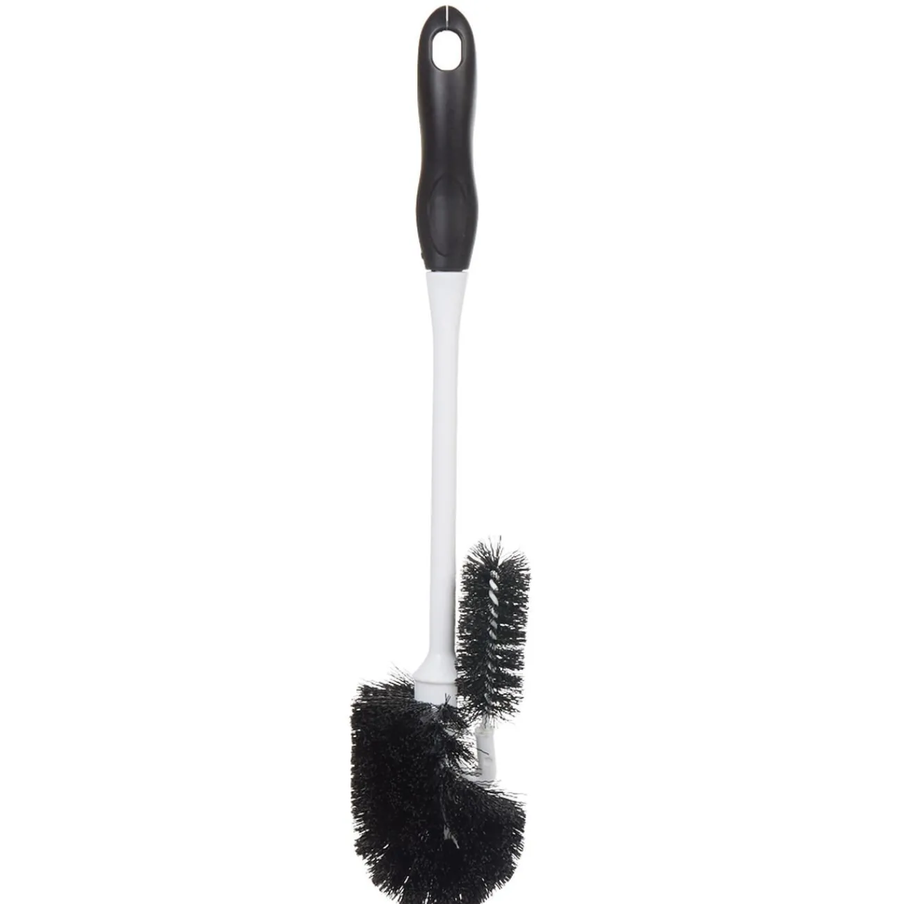 Brosse WC noire et blanche avec brossette intégrée. Le manche est détachable afin de changer la brosse quand il est nécessaire.