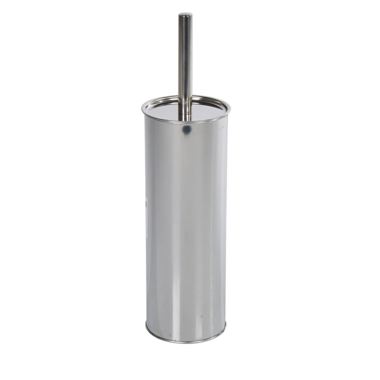 Brosse pour WC dans pot en métal uni gris.