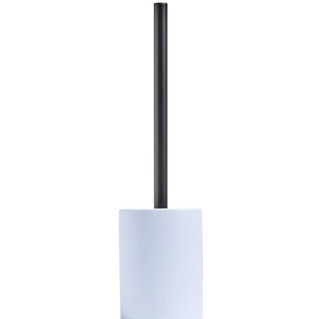 Apportez une touche déco à vos sanitaires en plus de les garder propres avec cette brosse WC noire avec socle rond en grès blanc et uni bleu clair.