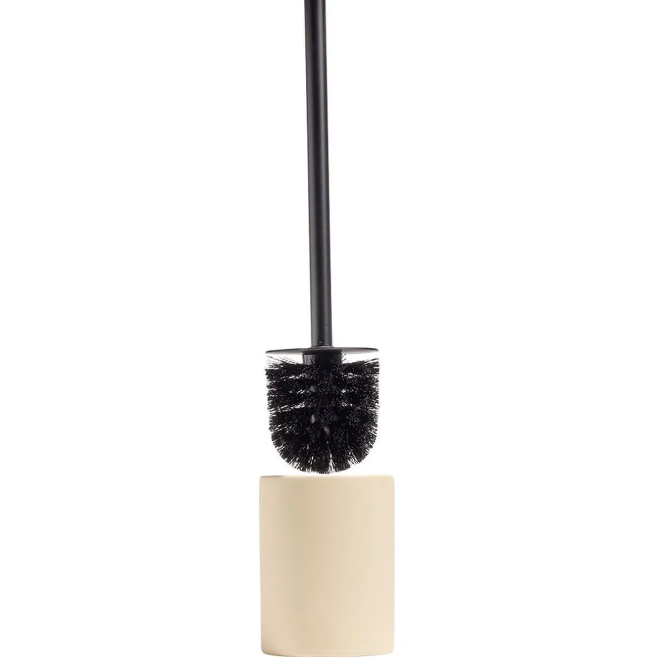 Cette brosse WC de couleur noire avec socle rond en grès blanc et uni nude sur l’extérieur gardera vos sanitaires propres et y apportera une délicate touche déco.
