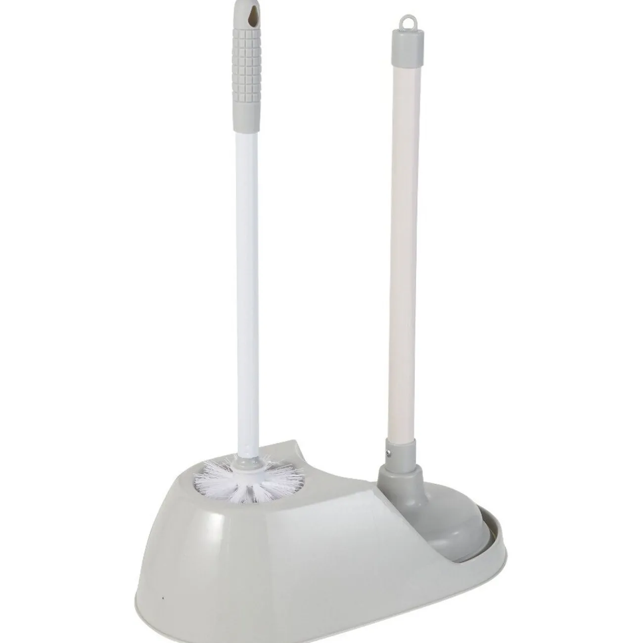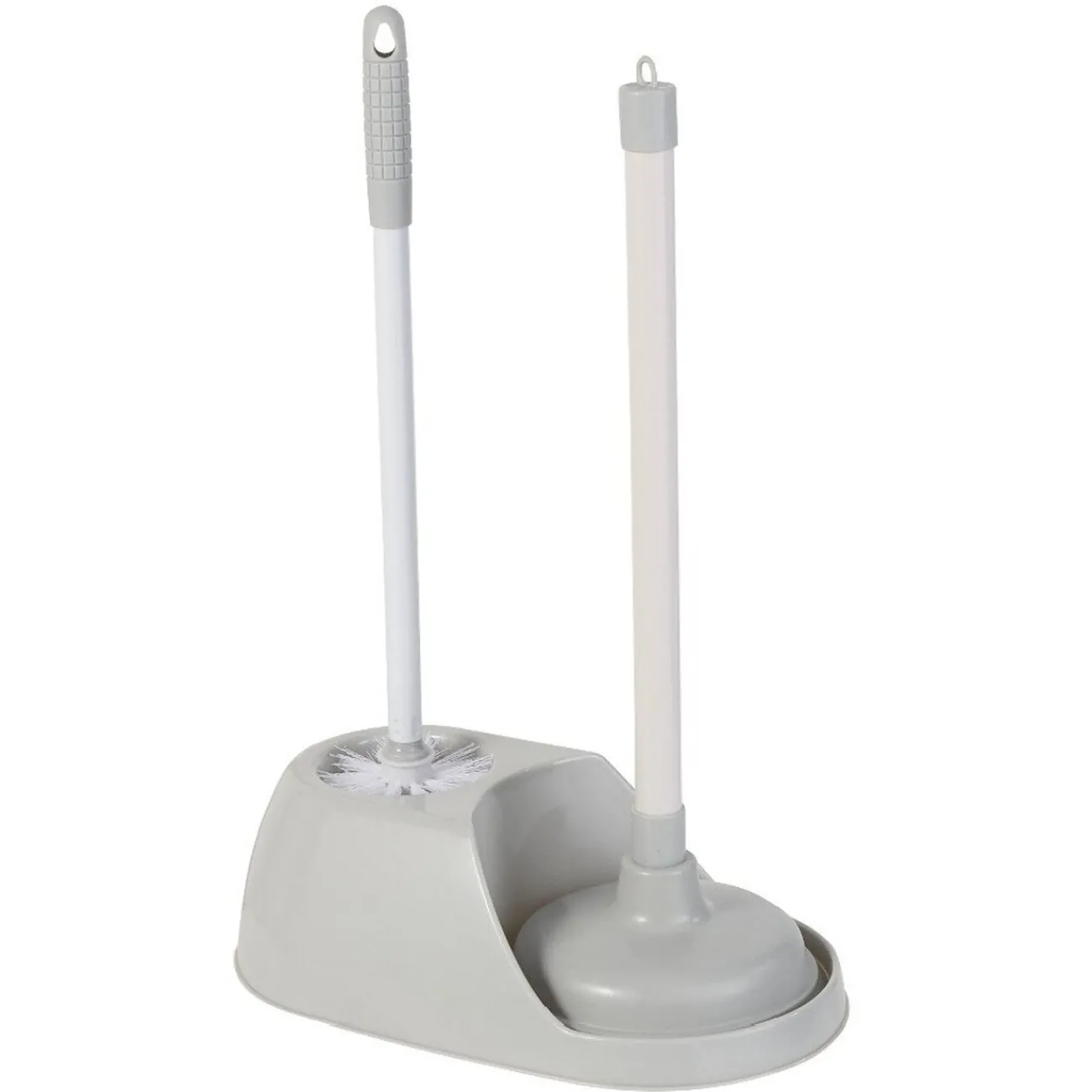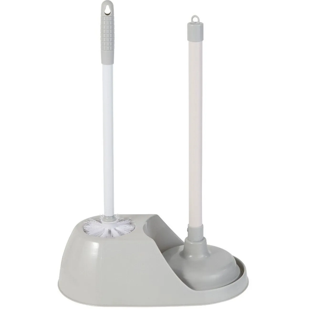 Soyez équipez pour vos toilettes avec ce kit WC gris 2 en 1 comportant une brosse et une ventouse.