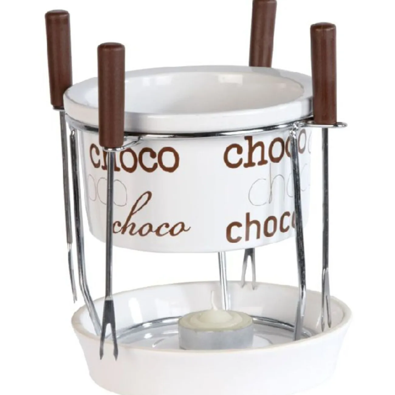 Set à fondue au chocolat, Ø 12,5 cm, h. 13 cm, 4 coupelles Ø 9 cm, céramique et 4 piques, vendu sans bougie. Diff. modèles, disponibilité selon arrivage.