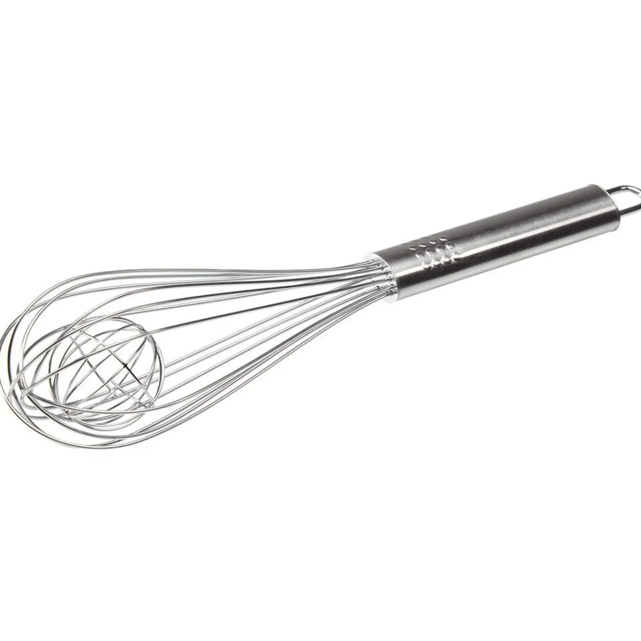 Fouet à bille en inox argenté, idéal pour la préparation de vos mets culinaires sans effort.