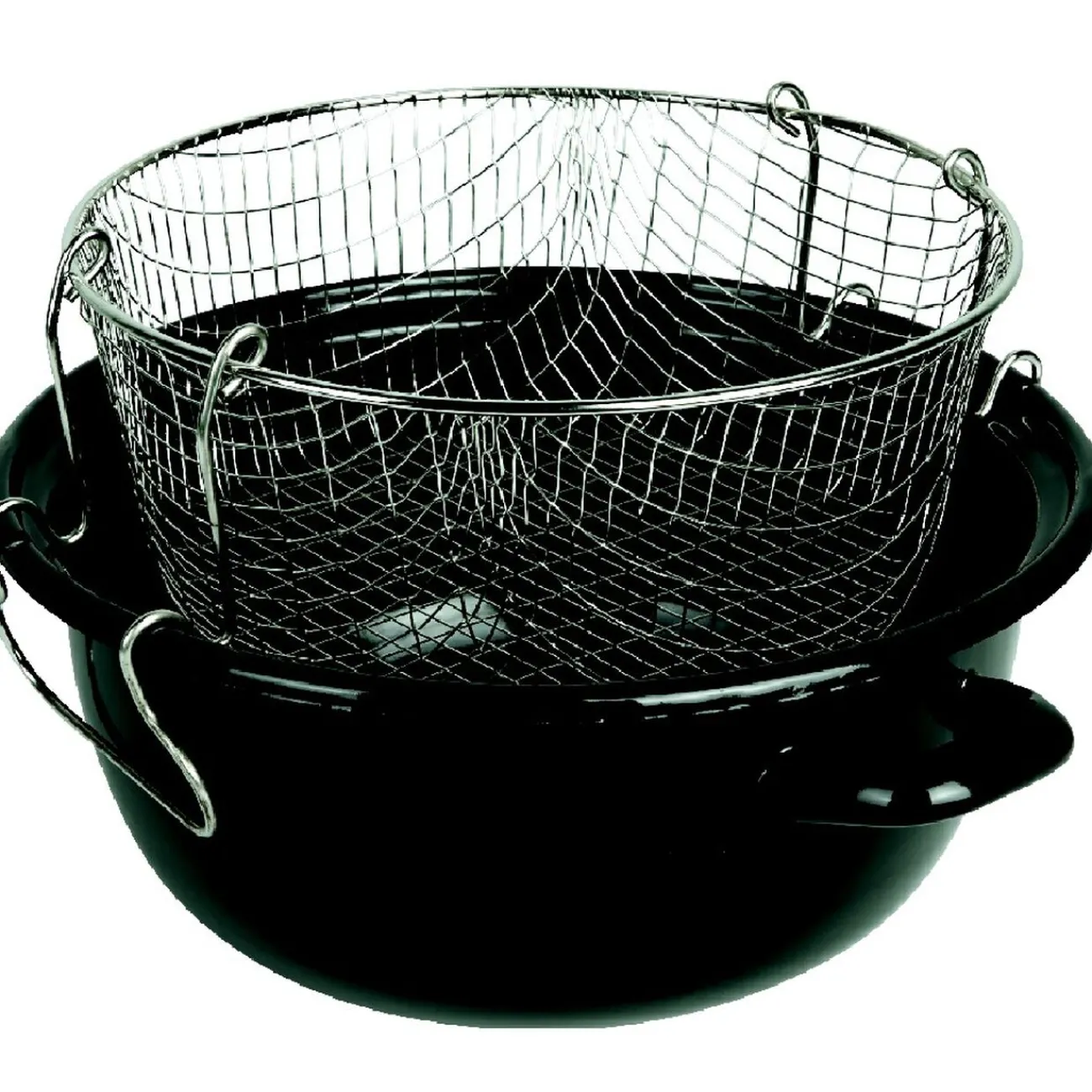 Friteuse, Ø 26 cm, acier émaillé, avec panier et couvercle en verre. Tous feux même induction. Passe au lave-vaisselle.