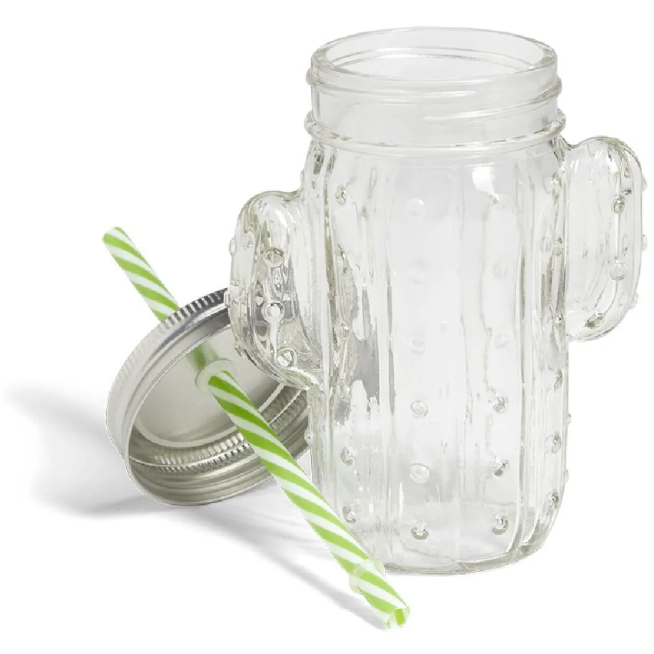 Ce joli gobelet en verre présente une forme ludique de cactus, ajoutant une touche de fantaisie à votre boisson préférée.