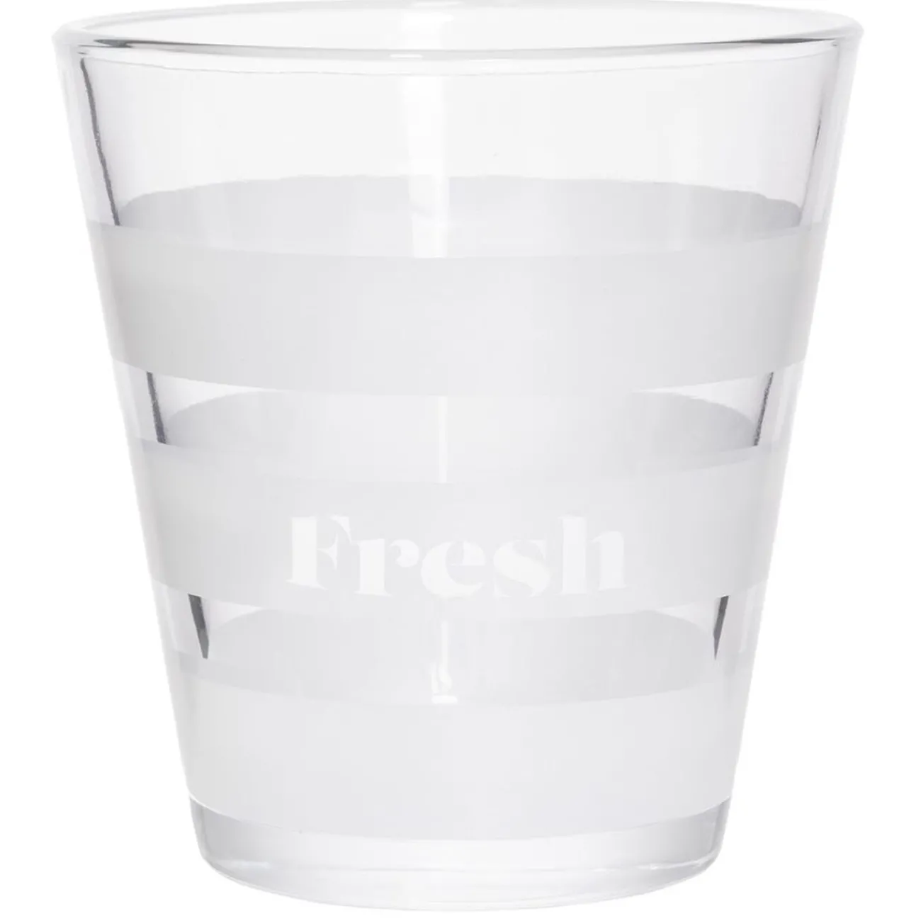 Lot de 3 gobelets en verre transparents avec rayures blanches et inscription Fresh.