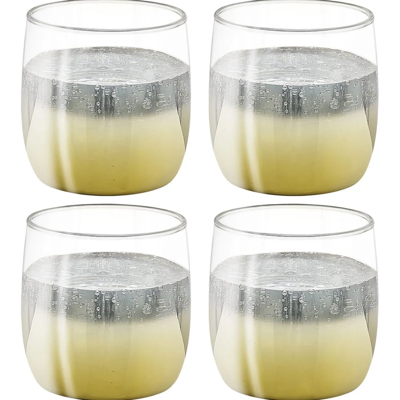 Lot de 4 Gobelets en verre transparent avec base de couleur doré.