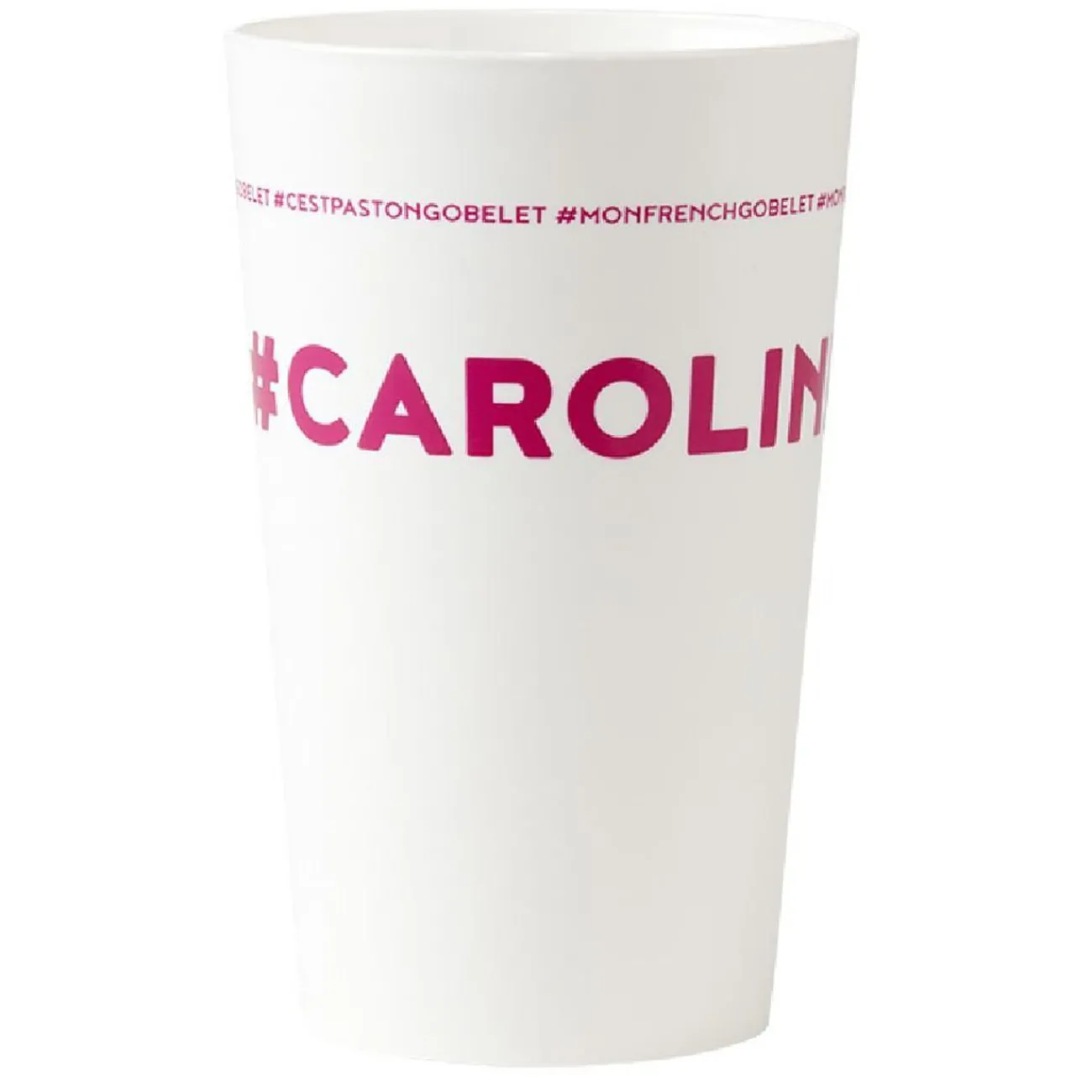 Gobelet #CAROLINE en plastique blanc et rose. Existe en différents prénoms.
