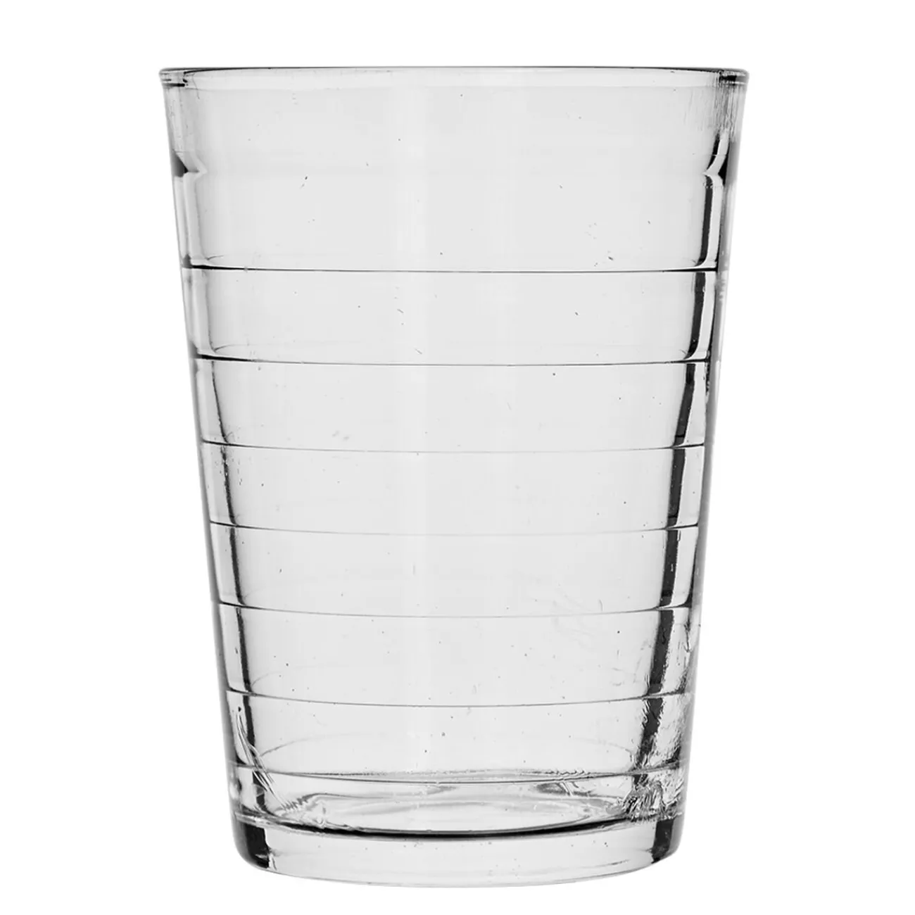 Lot de 6 gobelets striés en verre, d’une contenance de 20 cl.