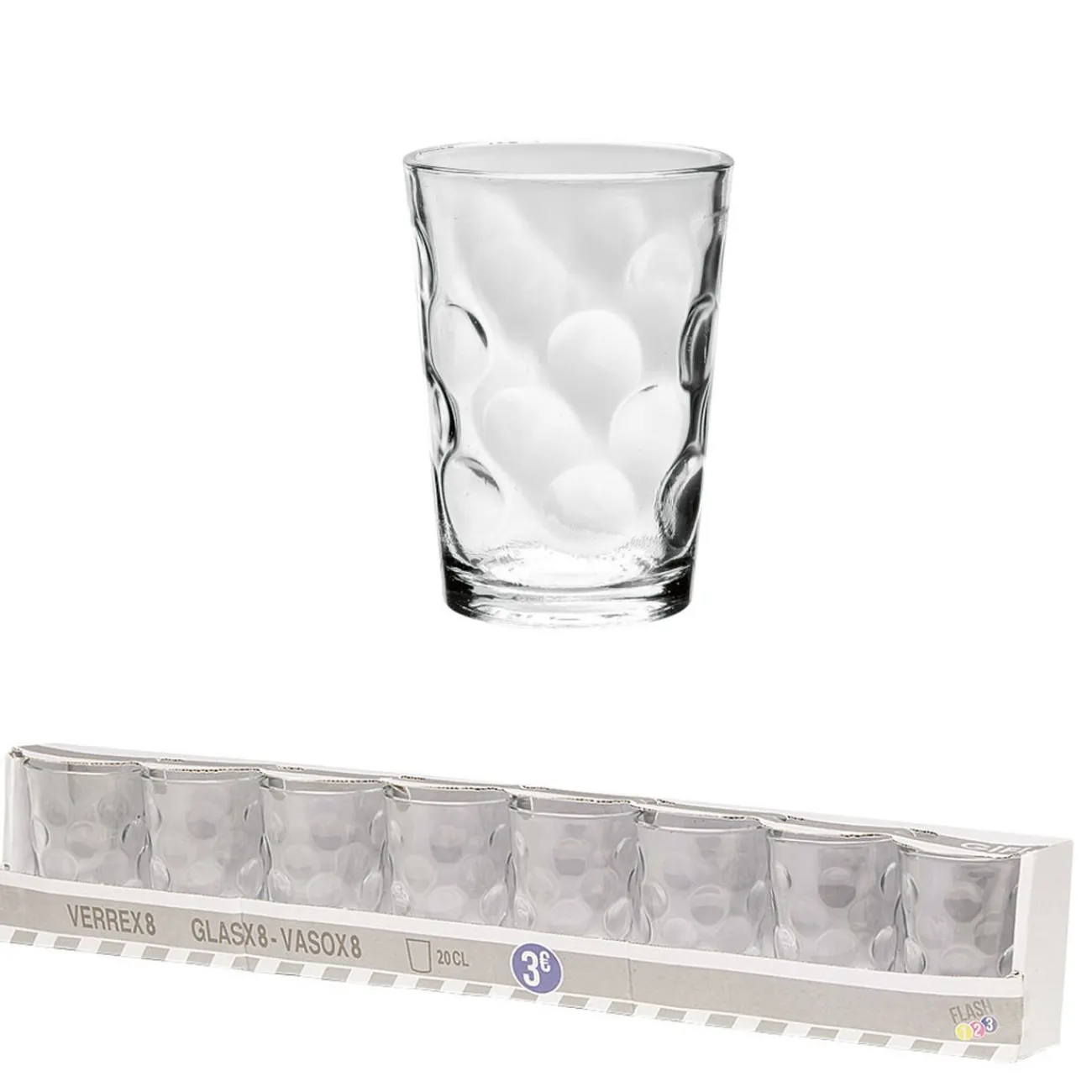 Gifi Gobelet verre motif embossé transparent 20 cl x8