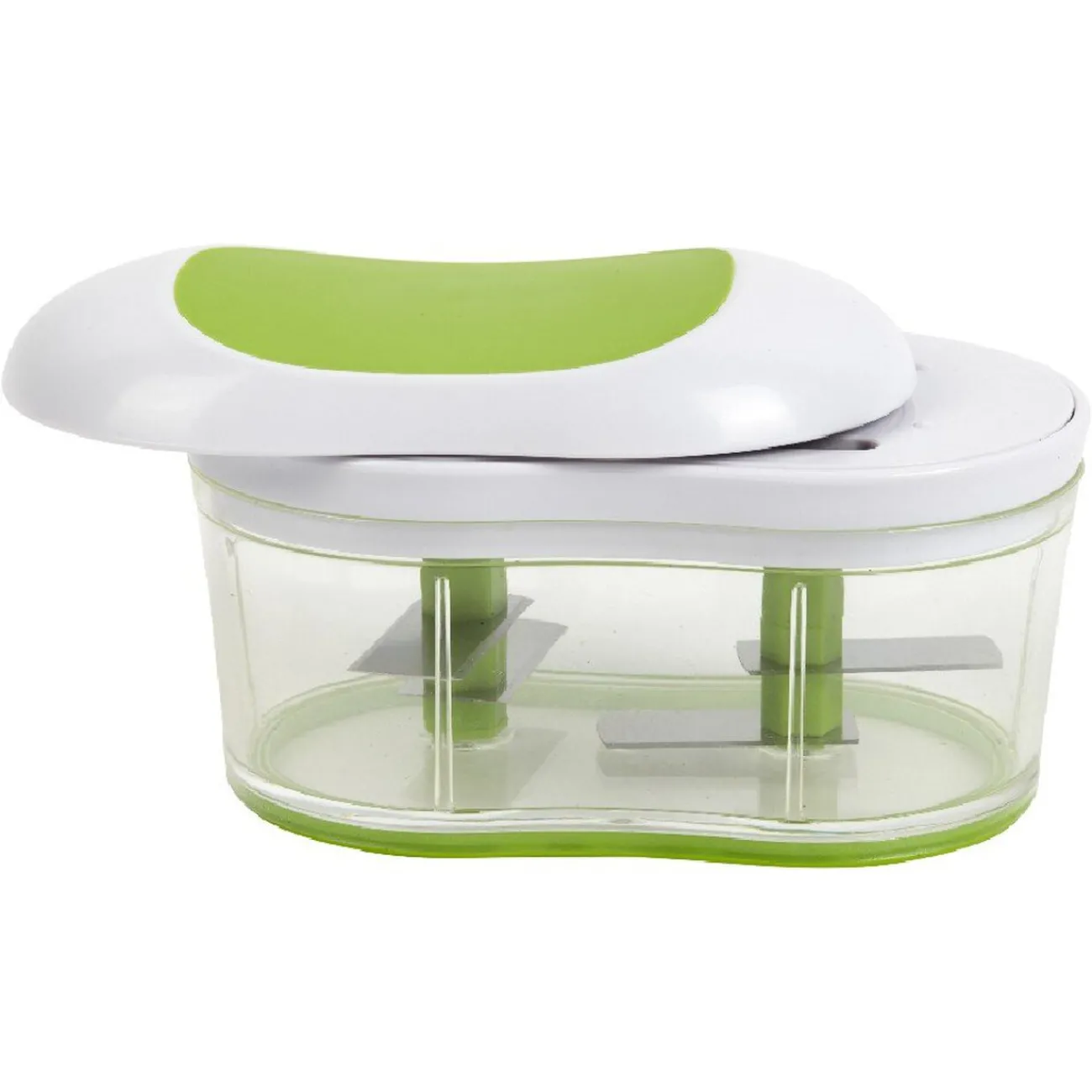 Ce mini hachoir manuel est constitué à l’intérieur de deux lames pivotantes permettant de hacher toutes sortes d’herbes ou d’aromates. Le couvercle de ce mini hachoir manuel permet d’activer les deux lames pour cela il suffit de le faire glisser d’avant en arrière en toute sécurité !