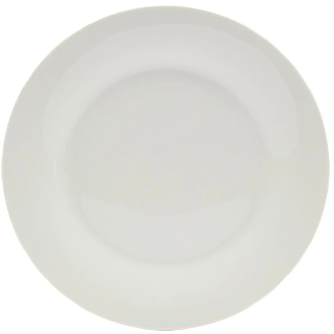Lot de 10 assiettes plates au style neutre uni blanc.
