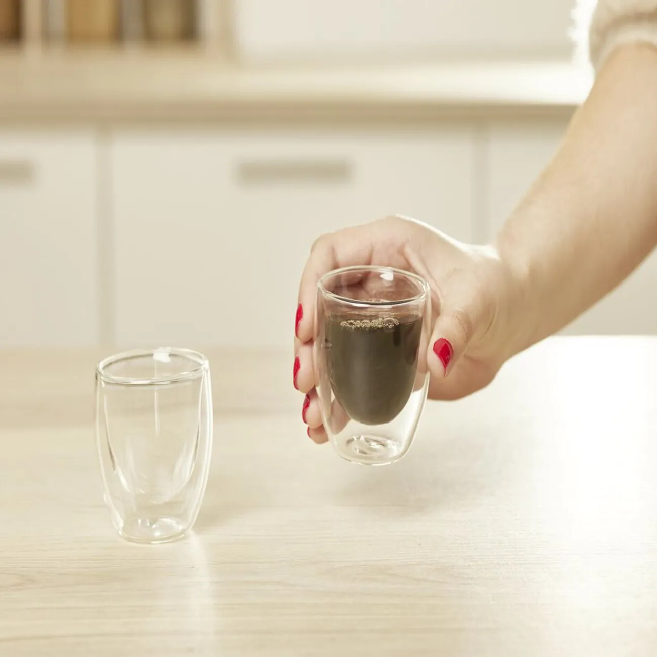 La conception innovante à double paroi de ces verres maintient les boissons chaudes tout en gardant l’extérieur frais au toucher.