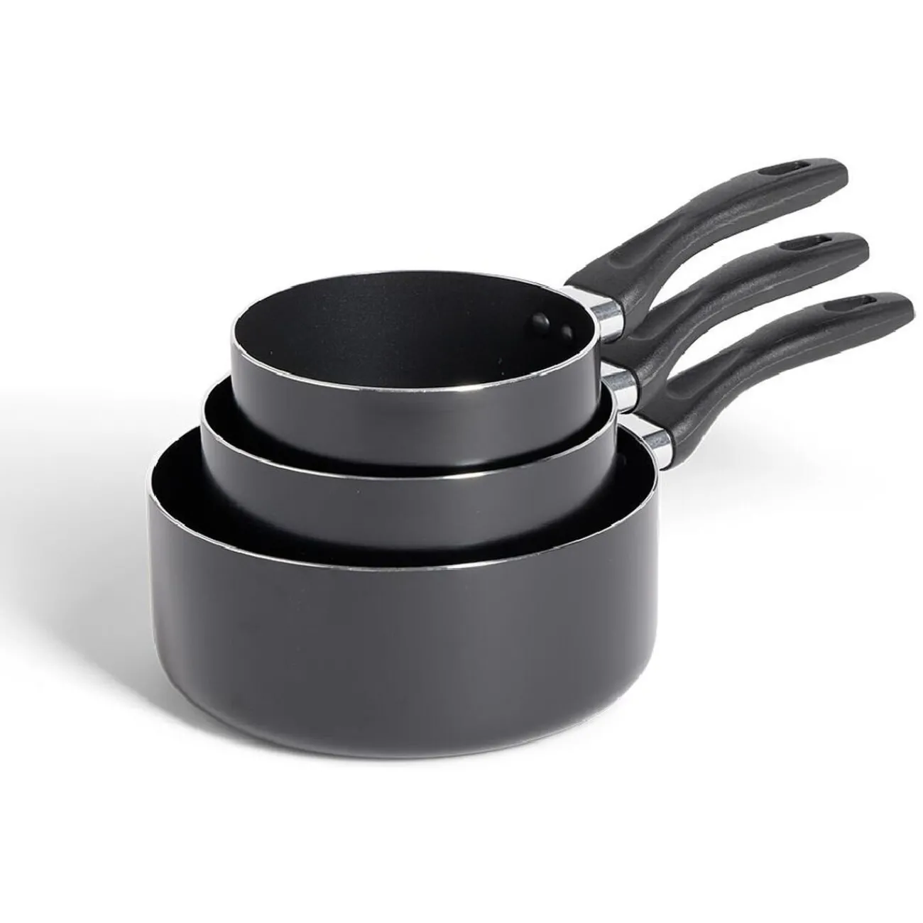 Gifi Lot de 3 casseroles tous feux sauf induction aluminium noir Ø14/16/20cm