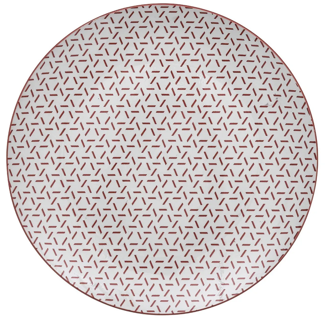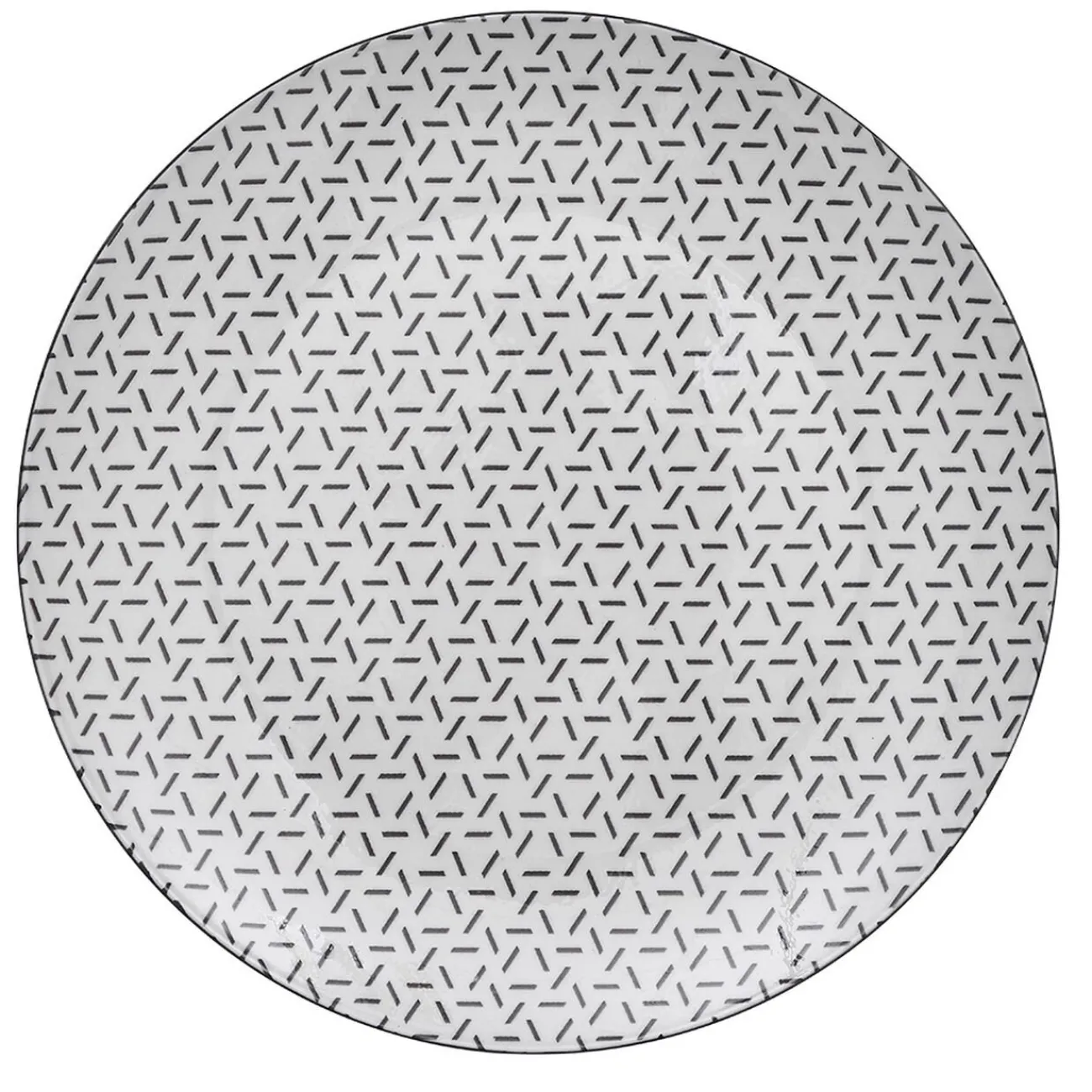 Set de 4 assiettes plates en porcelaine blanche avec contour et motifs petits traits colorés formant des triangles, idéal pour créer des mélanges de couleur sur votre table.