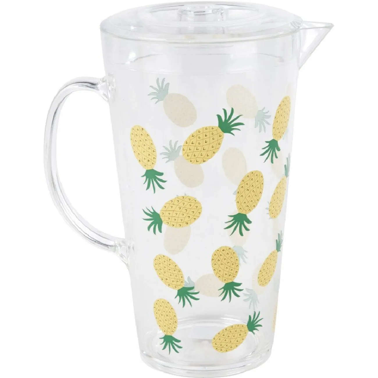 Ce produit existe en 3 modèles, modèle aléatoire selon disponibilité en magasin – Couleur : Rose motif flamant rose, jaune motif ananas, vert motif cactus – Dimensions : Ø9,7 bas du pichet x Ø13,8 haut du pichet x H25,5 cm – Matière :Plastique