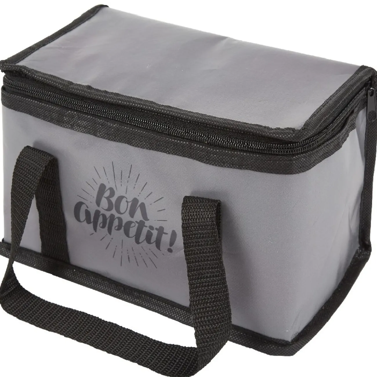 Lunch bag gris et noir avec inscription « Bon Appétit » ou beige à motifs géométriques. Ce set complet comprend :