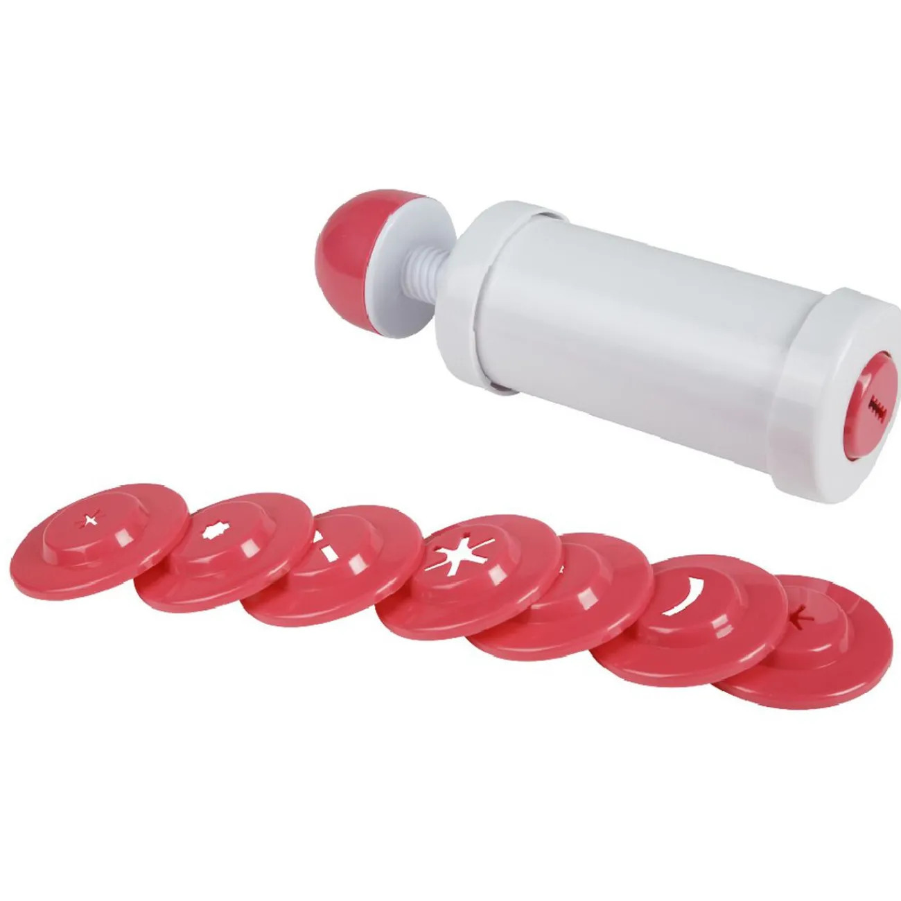 Réalisez de déclicieux churros, beignets et biscuits secs grâce à cette machine à presse et ses 8 embouts aux décors différents.