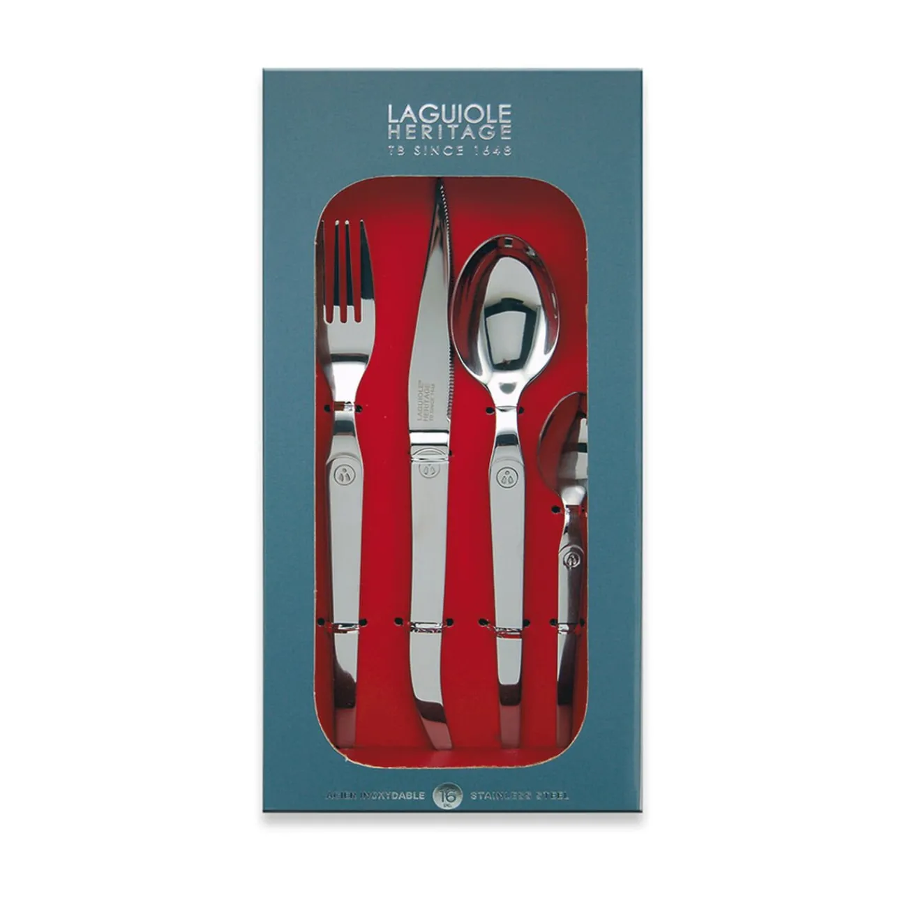 Découvrez l’élégance de la ménagère LAGUIOLE INTUITION avec ses 16 pièces tout en inox poli brillant. Elle se compose de 4 couteaux – 4 fourchettes – 4 cuillères de table – 4 cuillères à café en boîte Laguiole Heritage.
