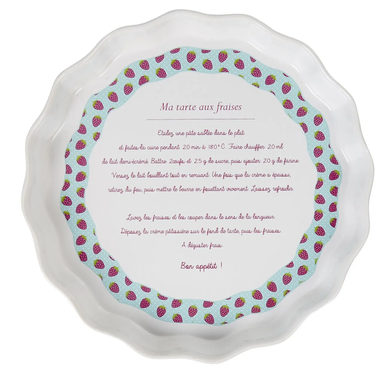 Moule à tarte en céramique de couleur blanche avec intérieur déco multicolore