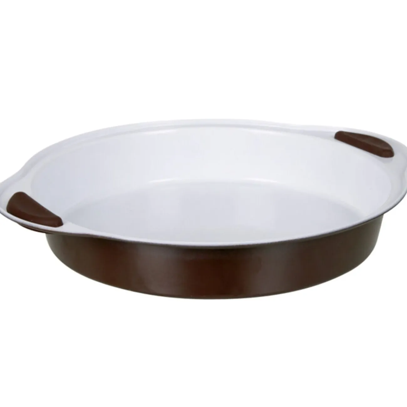 Moule à tarte ø 26 cm, métal, intérieur revêtement céramique, poignée silicone. Coloris : chocolat et crème.