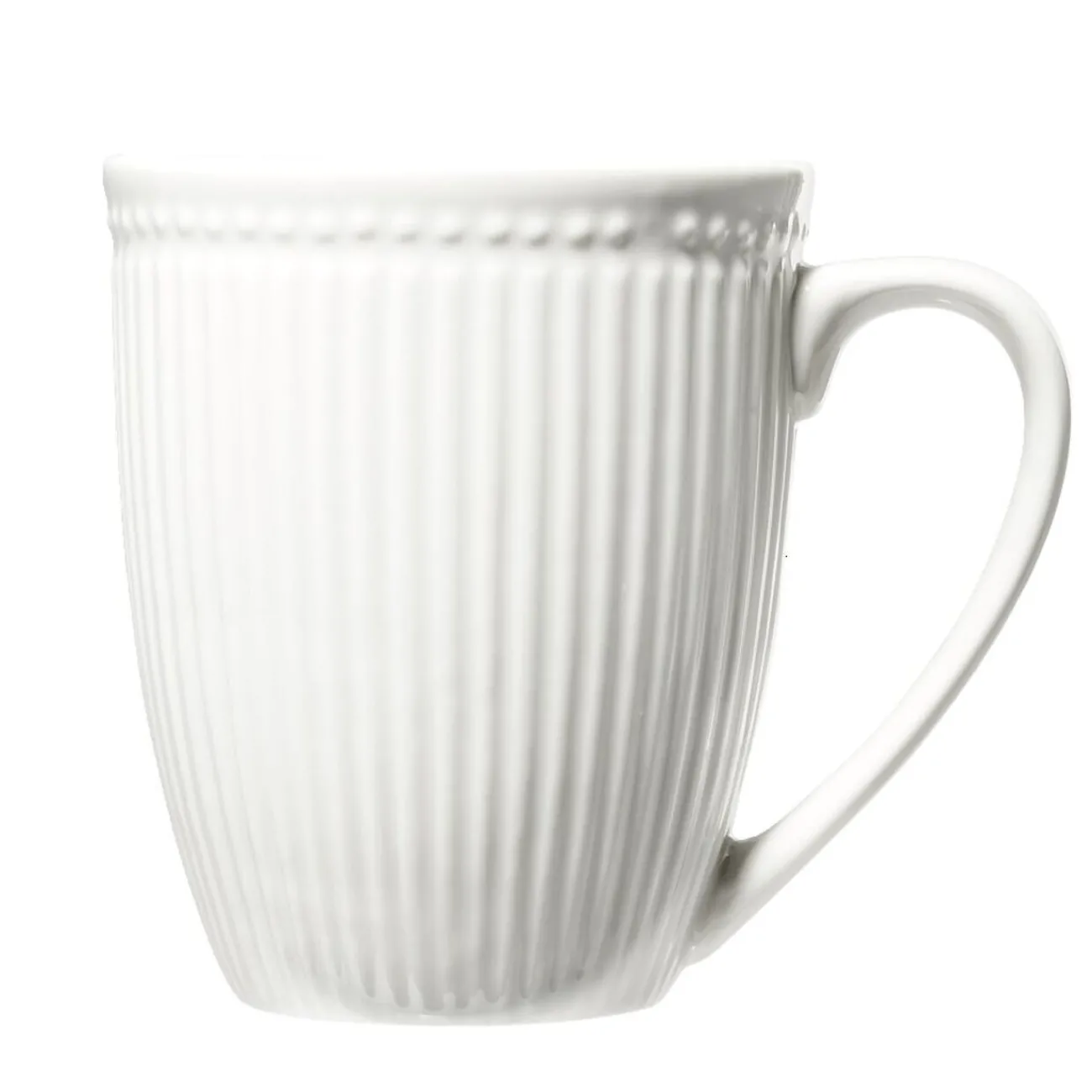 Découvrez le mug en porcelaine Colombe blanc strié, un incontournable pour les amateurs de café et de thé.