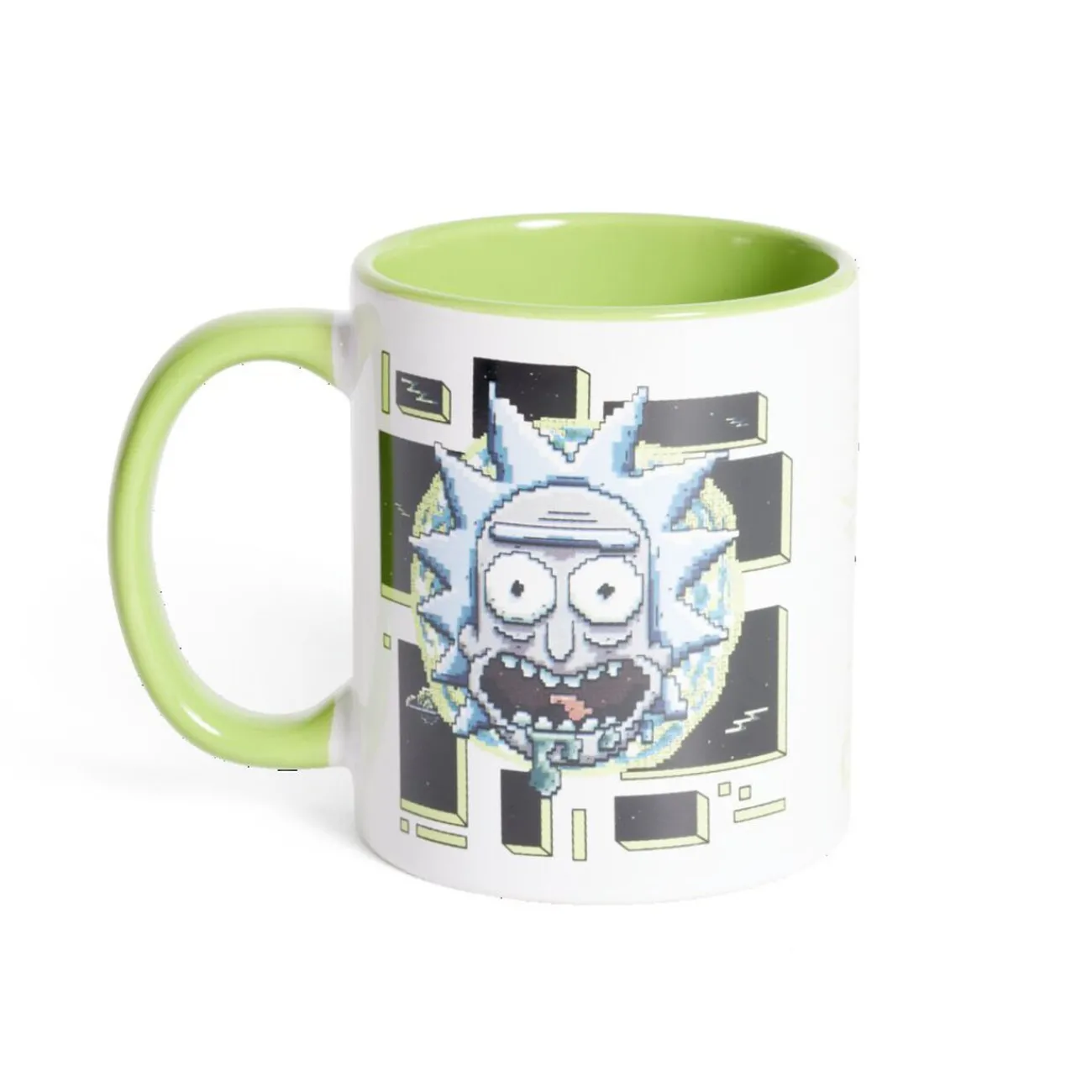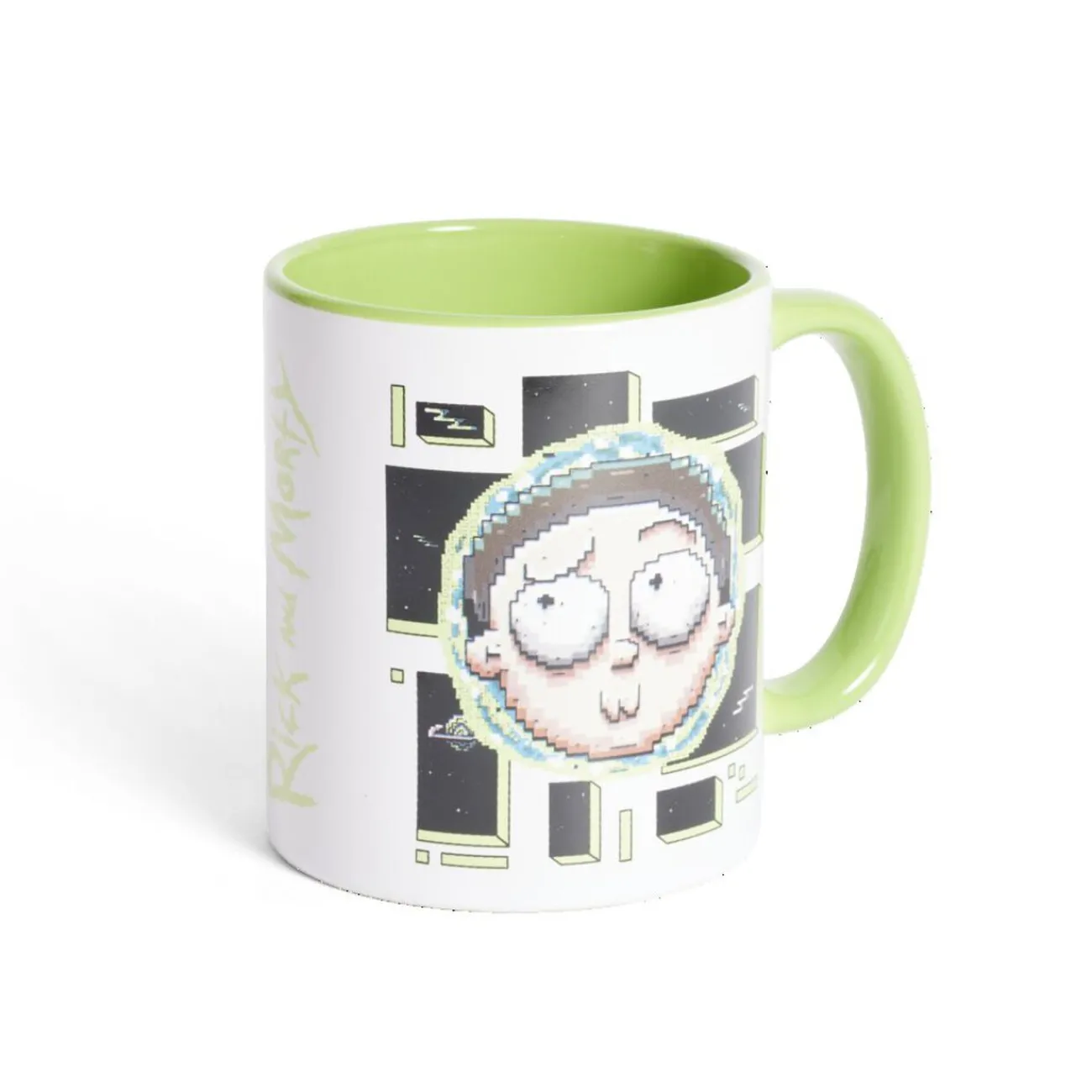 Plongez dans l’univers déjanté de Rick et Morty avec ce mug blanc à l’extérieur et vert clair à l’intérieur !