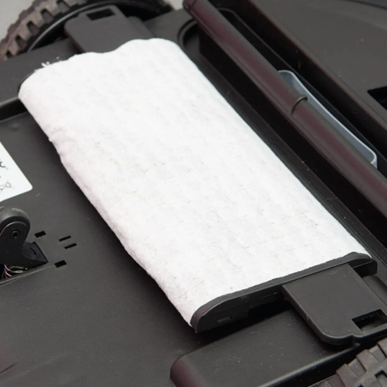 Détecteur d’obstacles, fonction antichute, poignée de transport, lingette attrape-poussière.