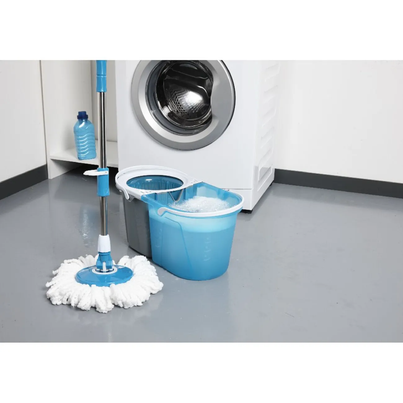 Bien plus hygiénique et pratique, son seau bleu / gris se compose de deux compartiments permettant de séparer eau sale et eau propre.