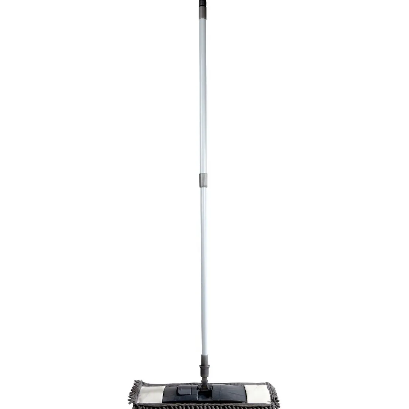 Ce balai plat avec housse chenille microfibre et son manche télescopique est pratique pour dépoussiérer et laver en un tour de main !