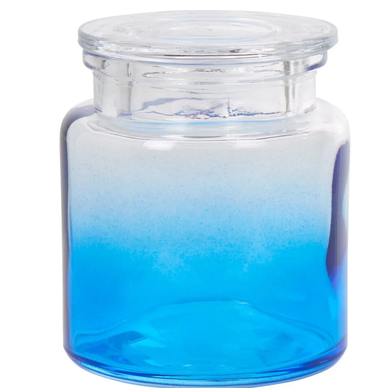 Poubelle à coton pour la salle de bain en verre transparent effet tie and die bleu.