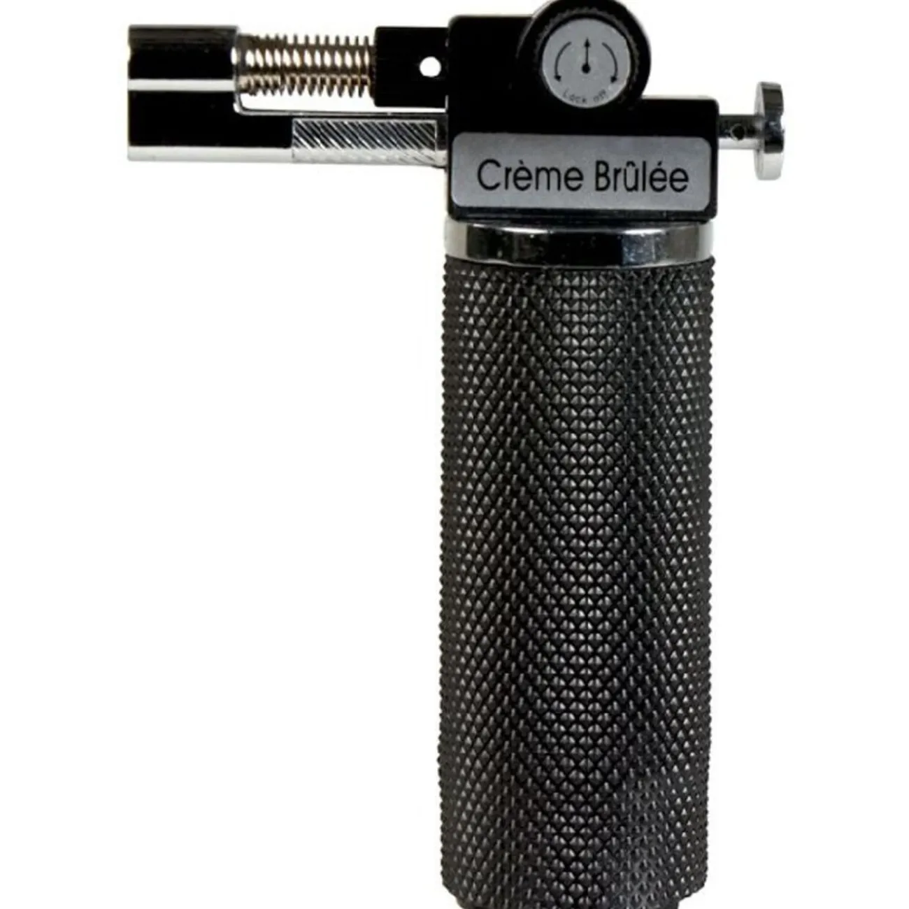 Ce chalumeau de cuisine est idéal pour les crèmes brûlées. L’intensité de sa flamme est réglable. Il est rechargeable pour l’utiliser autant de fois que vous le souhaitez. Il se rempli avec du simple gaz à briquet, facile à trouver dans tous les bureaux de tabac. Dim. 9x4x12,5 cm, métal.