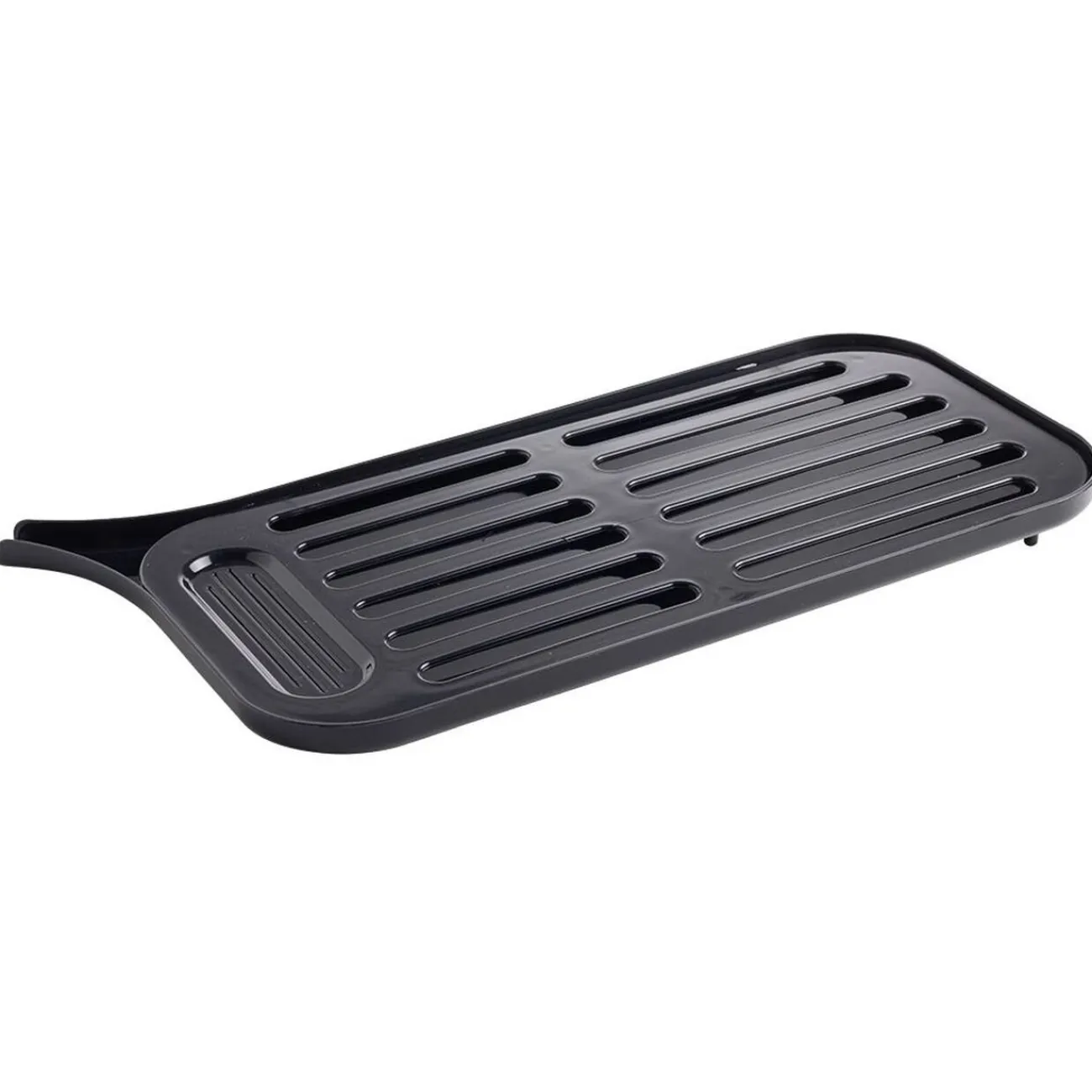 Égouttoir à vaisselle avec déversoir et grille en plastique.