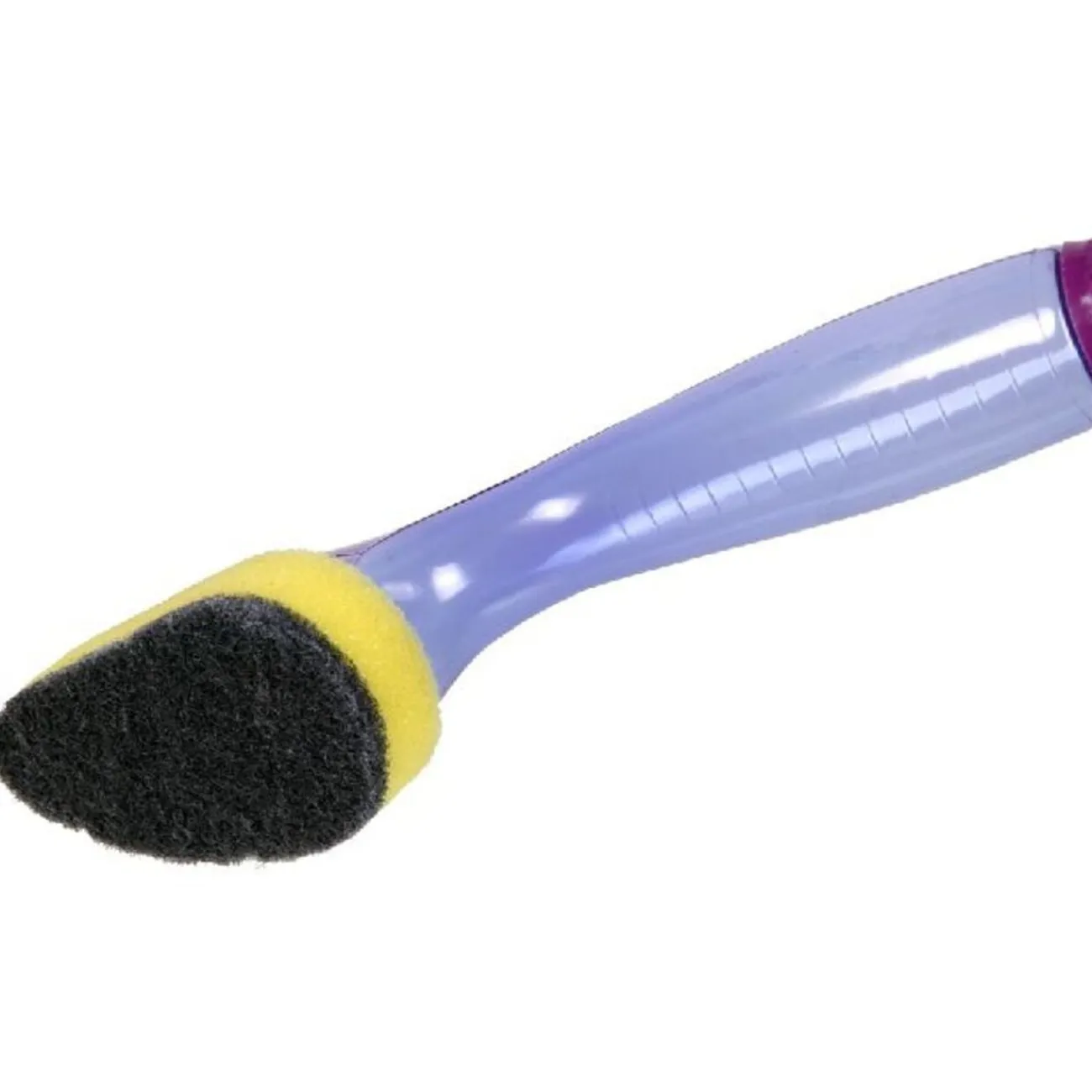 Eponge grattoir avec réservoir pour liquide vaisselle (15cl.), plastique. Diff. coloris, disponibilité selon arrivage.