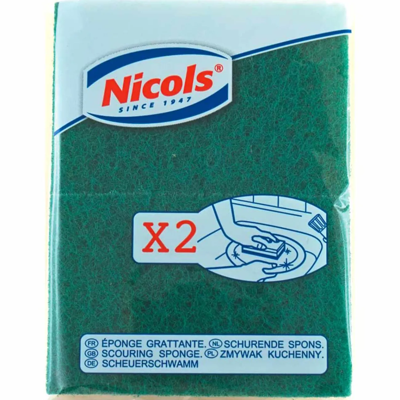 2 éponges végétales grattantes vertes Nicols.