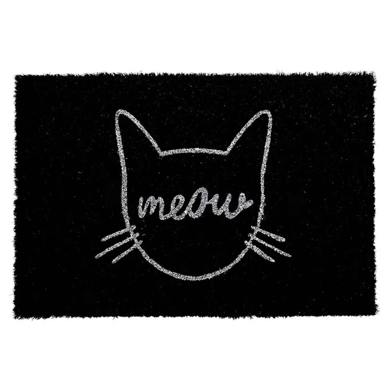Ce paillasson noir en fibre de coco vous apportera une petite touche d’humour grâce à son motif blanc de tête de chat avec inscription « Meow » tout en restant sobre à la fois.
